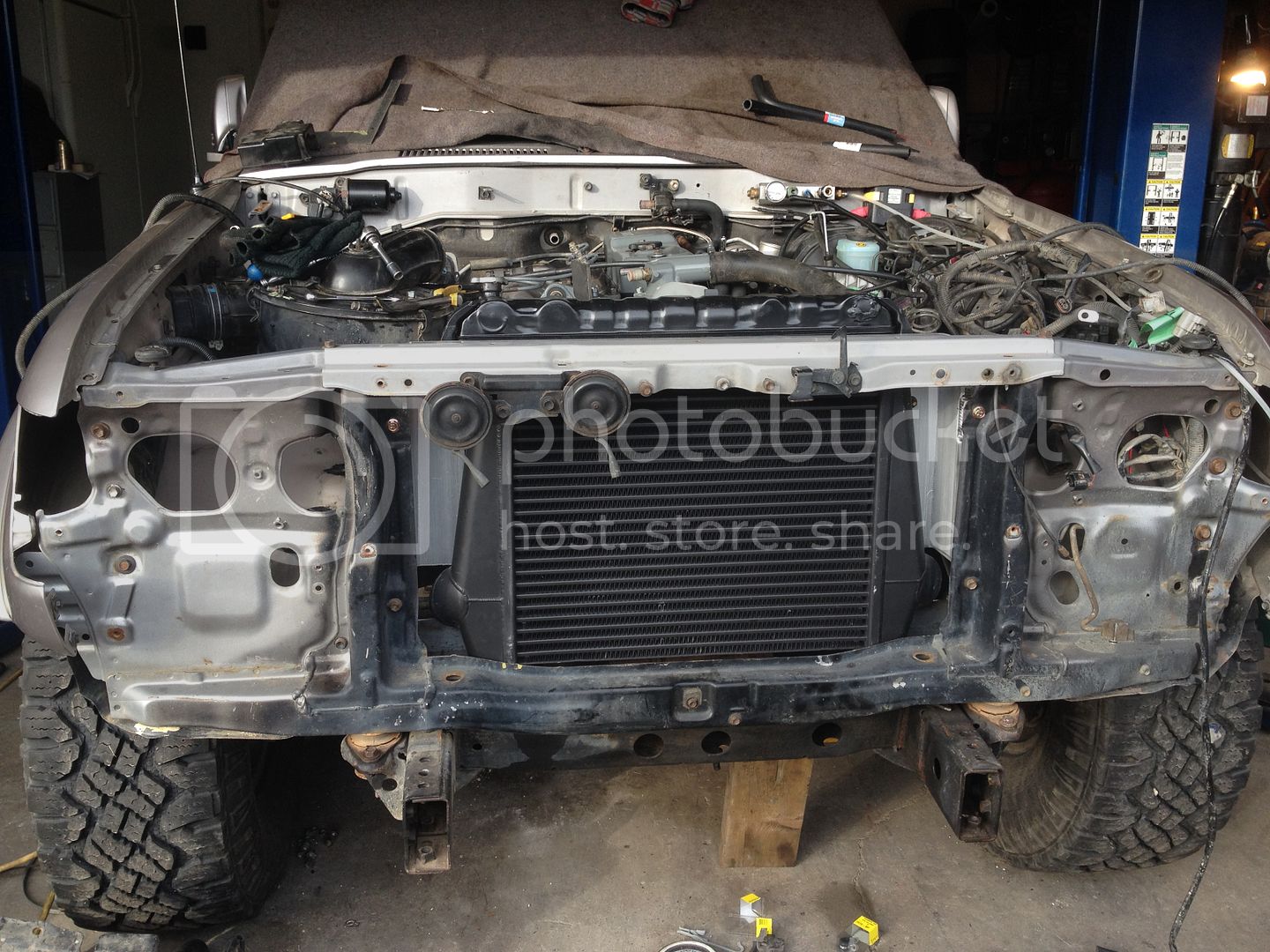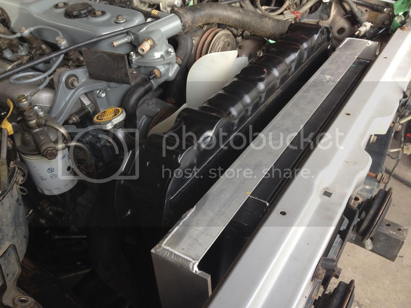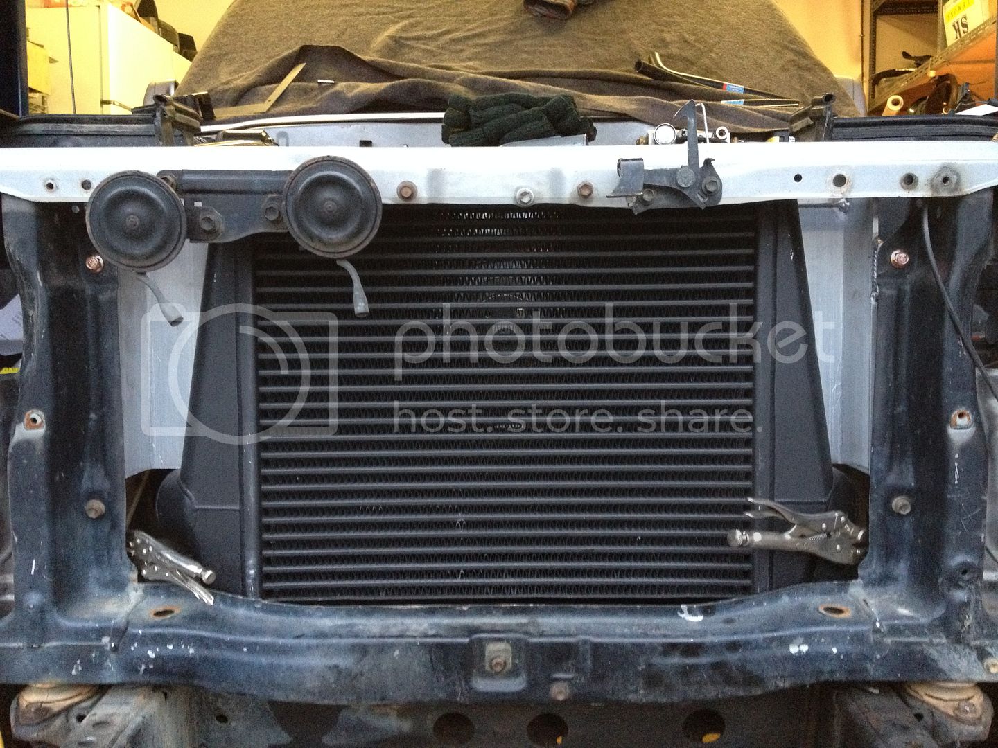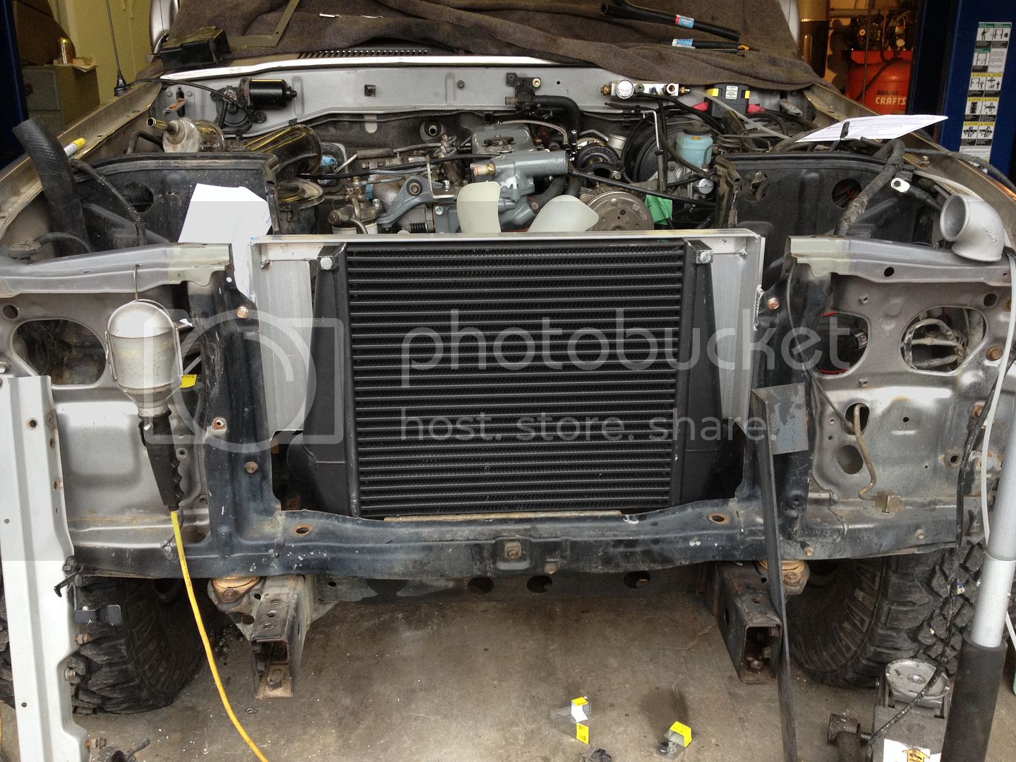 That intercooler looks like a sweet fit Jerms. I'm must confess I a tad jealous. That thing will perform well for you. Offsetting your fan will also help it pull better. I forget what is ideal, but your close to it. I really like that copper pipe work for heater lines. I think I'll have to borrow that from you as I'm going to be doing some of the same work in a month or so. Your intercooler/rad support looks very functional and will let you take it apart quite easy. I dropped by this sat, but you were not there so.... I went to Kms for an hour and half. My kids were at go bananas. I can't stand that place. Just wait till you have kids!