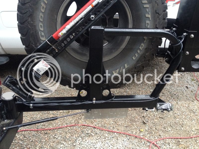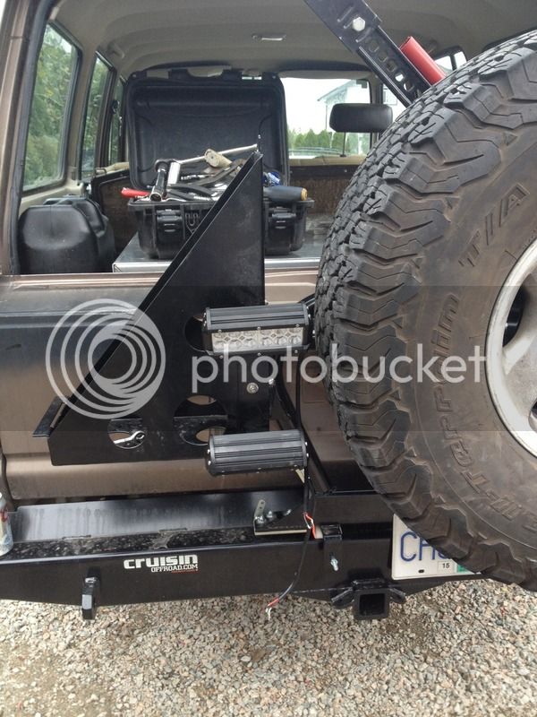 I had ideas of making a bike carrier to attach to the spare wheel carrier using an adapter with flanged 2.5", (1/4" wall) square tube that bolted on behind/through the spare wheel.