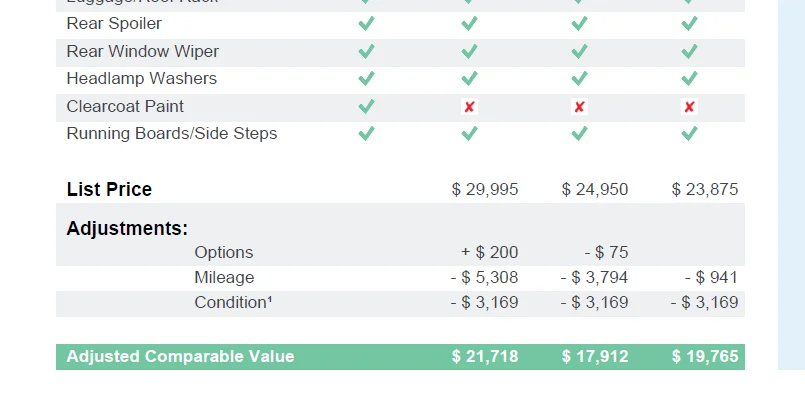 I would even include several similar model years in your comparison as those would be reasonable replacement vehicles.