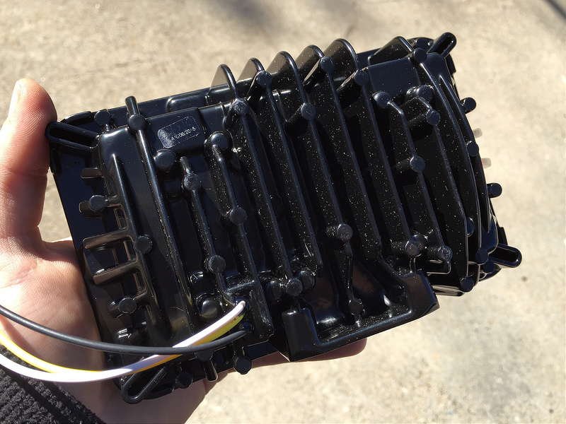 4. using the flathead screwdriver, carefully pry the prong retainer back into position so that the prongs dont slide back out of the black plastic holder.