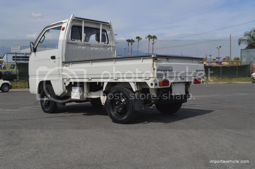 Up for auction/sale is this rare 1988 Suzuki Carry truck. It is a 4x4 with locking hubs and limited slip differential. It is virtually rust free, there are only a few small bubble spots. Please check photos. It will not need to be equipped with the 25 MPH speed limiter. It starts up without any issues. All 3 sides of the bed fold down to provide more surface room to haul boards, pallets, ect… I would not recommend this mini truck for anyone over 6’3”, although it is all about personal preference. This is a legally imported vehicle with all supporting documents. The truck is over 25 years old so it is NHTSA exempt. It is over 21 years old and original configuration so it is EPA exempt.