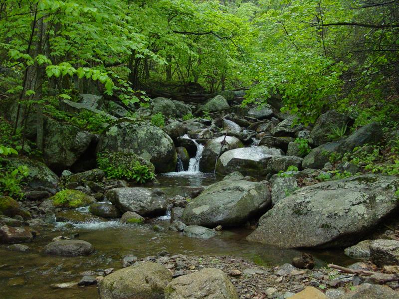 Humans are not alone in leaving tracks in the gorge. In fact, torrential downpours from Hurricane Camille in 1969 and Hurricane Agnes in 1972 wiped out an old logging road up the gorge, divided and changed the lower course of the stream, heaped debris into great piles across what road remained, and helped a group of citizens obtain wilderness designation for St. Mary's in 1984. Of course, had the area not been mined and logged in the early 1900s, the trees and soil may have been better able to withstand the powerful floodwaters. Acid rain has been blamed for decimating the native trout fishery here, but some brookies remain to give catch-and-release fly-fishermen a thrill. Only single barbless hooks may be used.