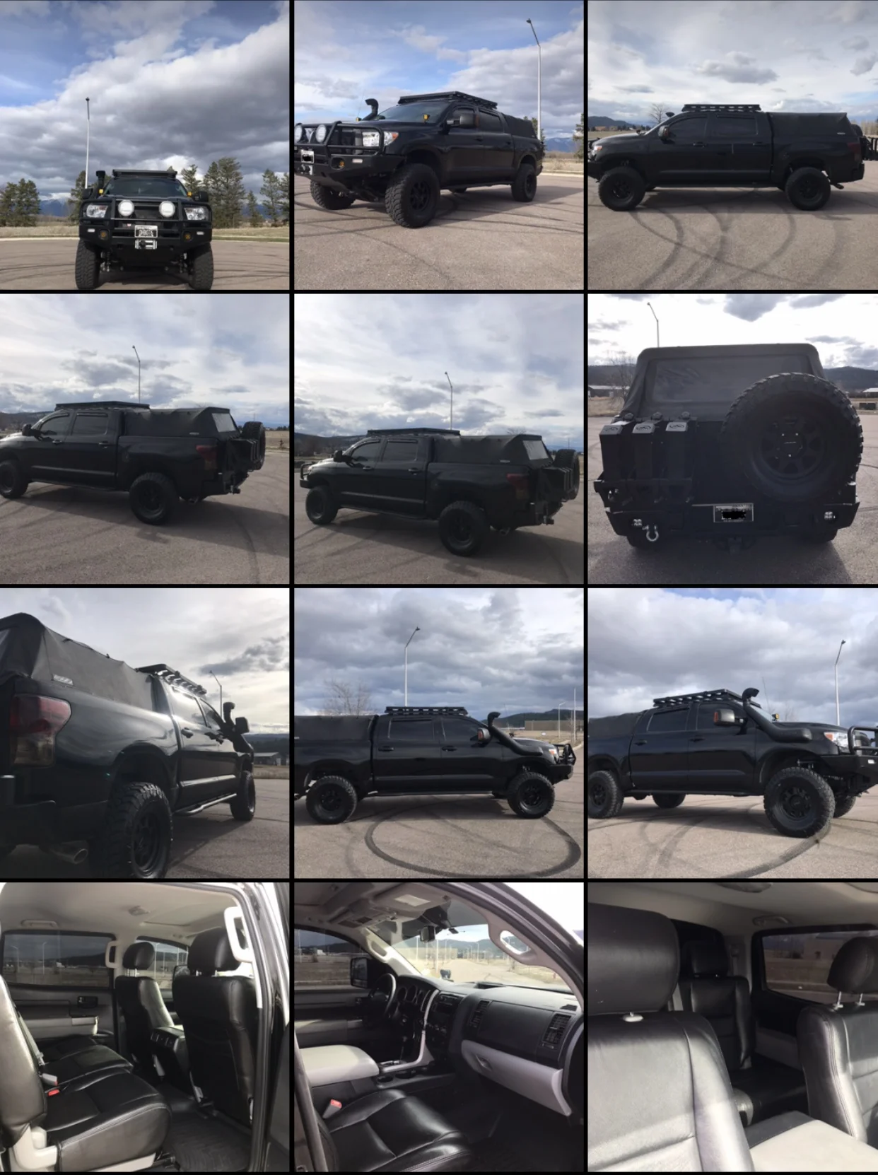For sale is my 2013 Tundra I purchased brand new off the showroom floor at my local Toyota dealer. I never planned on selling this truck but have other projects that require a one ton truck for pulling large trailers and heavy equipment for my business. Also have a 1969 FJ40 that is currently torn apart and needs attention/funds. This truck has seen pavement and gravel roads only. Has never been wrecked and has been stored in a garage when not being driven, which isn’t much if you see the mileage. Has a few surface scratches from some overhanging trees and some marks where I previously had fender flares installed. Also one window vent shade missing on passenger front window. Other than that this truck is in excellent shape. All services and regular fluids changed bye Kalispell Toyota.Well over $20,000 in upgrades!