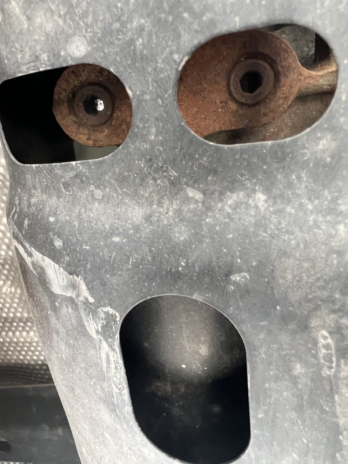Well I'm kinda hosed here. There's probably a solution out there but at this point I'm pretty dejected. Was going to work on my suspension over the weekend and the KDSS valve and nuts are seized up pretty tight. I was able to knock one of them loose and the other one was so stuck that my 5mm allen key broke and is stuck inside. I was applying steady pressure with it on a pretty bar but not too forceful. Could have been that it was seized in tight or perhaps a s***ty 5mm allen socket. Either way this sucks. The vehicle apparently was from TX, moved to Canada for two years, and then to Tennessee. Pretty horrible what 2 winters in Canada will do to a car. Before really working on the two KDSS nuts I sprayed it with rust penetrant overnight and wire brushed it as much as I could.