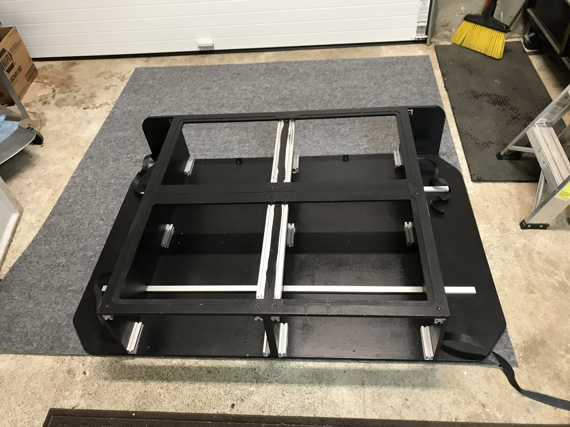 Laying out carpet, but shot shows case painted. Two coats and it was good to go. I removed wing supports and hardware, I taped the aluminum bits. I didn’t paint before assembling since LSO says it may make fitting too tight.