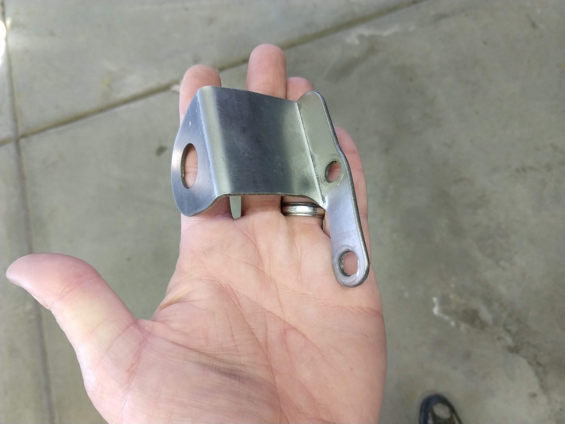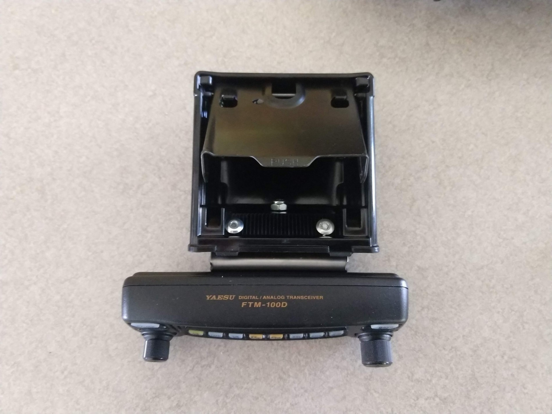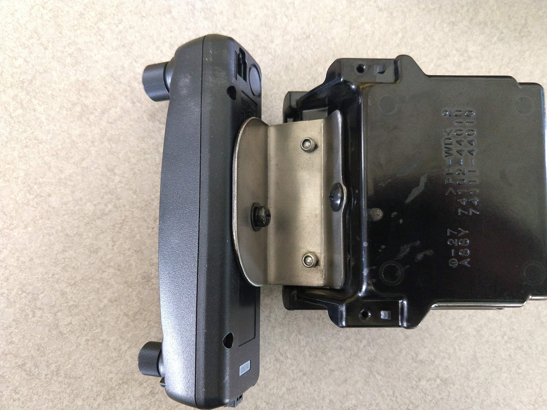 I decided the never-used ash tray/change drawer would be a good spot to mount the face of a Ham radio. Removed the handle, and made this little stainless bracket to mount the face to the drawer.
