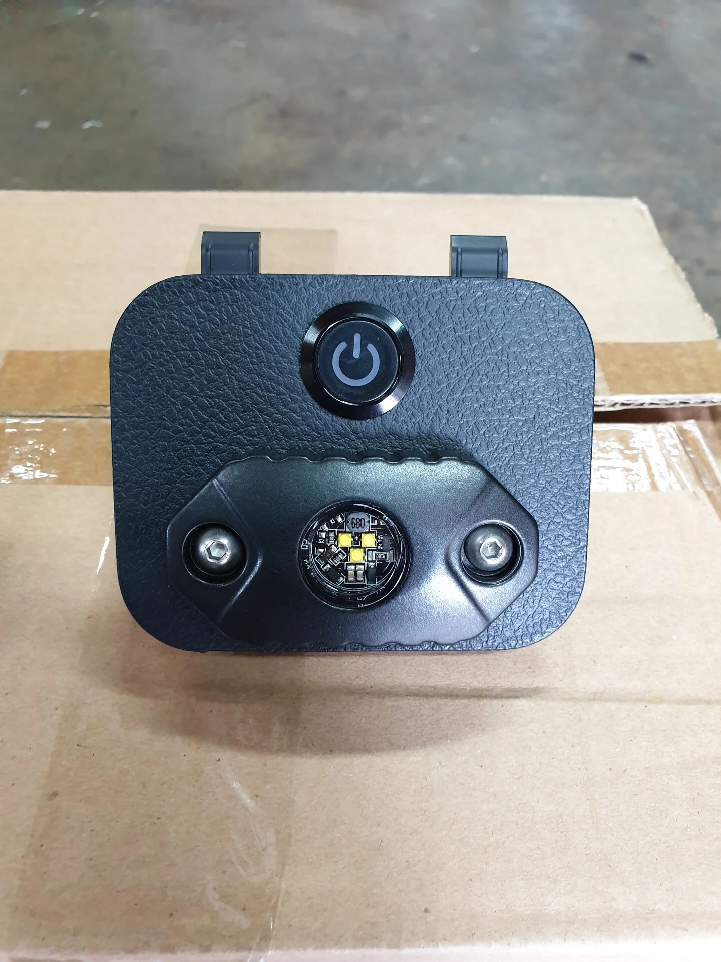 We really like the light. We used it alot this past Labor Day Weekend. Got lots of compliments from fellow campers.Light grey and Black covers with blue illuminated over-ride switch pictured.