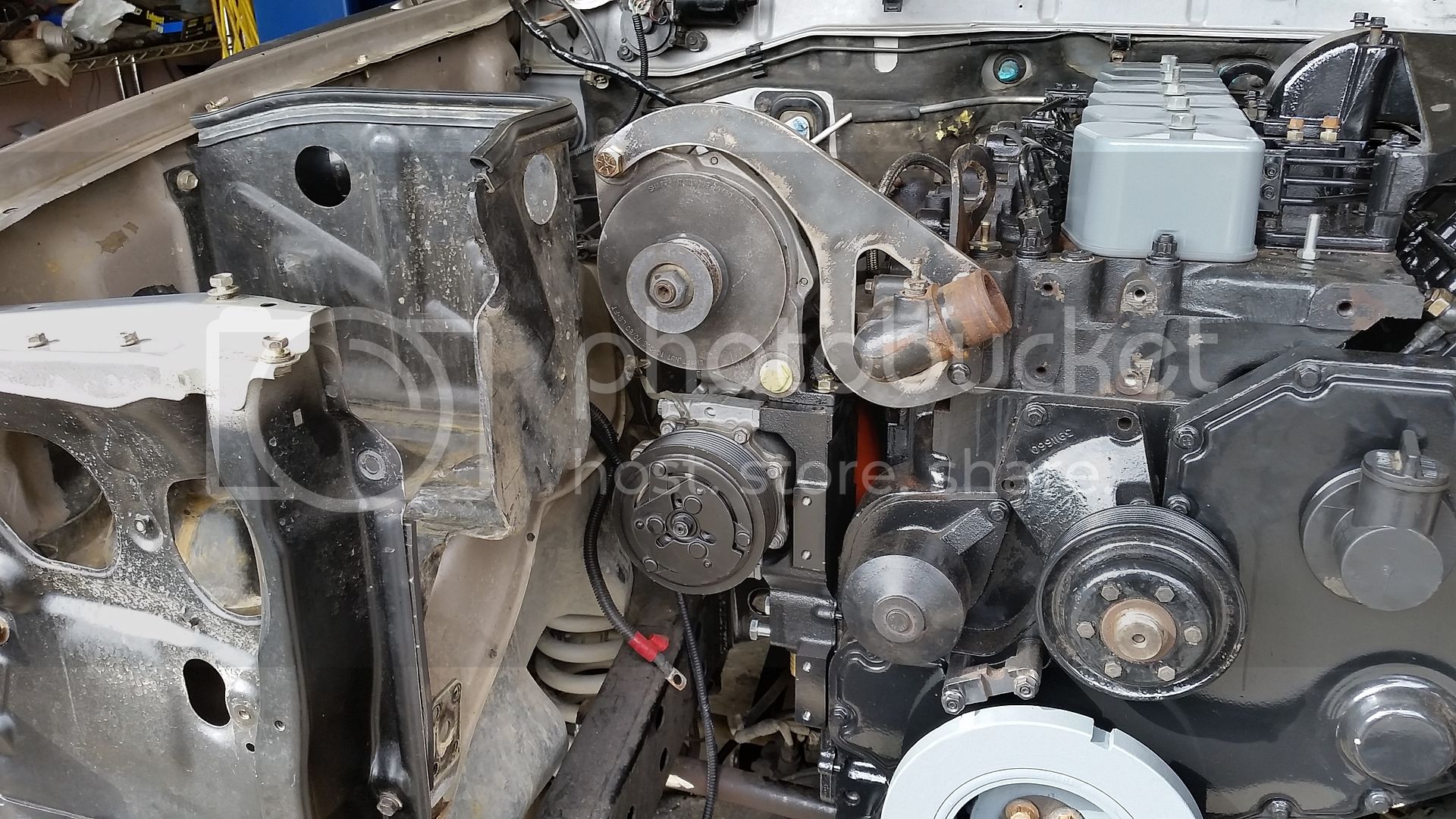 I then went back under the hood to do some mock up and see what I'm in for. I stated by bolting on the F800 accessory mount, A/C comp and Alternator...... Fits perfectly! No issues with hood clearance from what I can tell. I also bolted in the pass side battery box to make sure there was no interference there too.