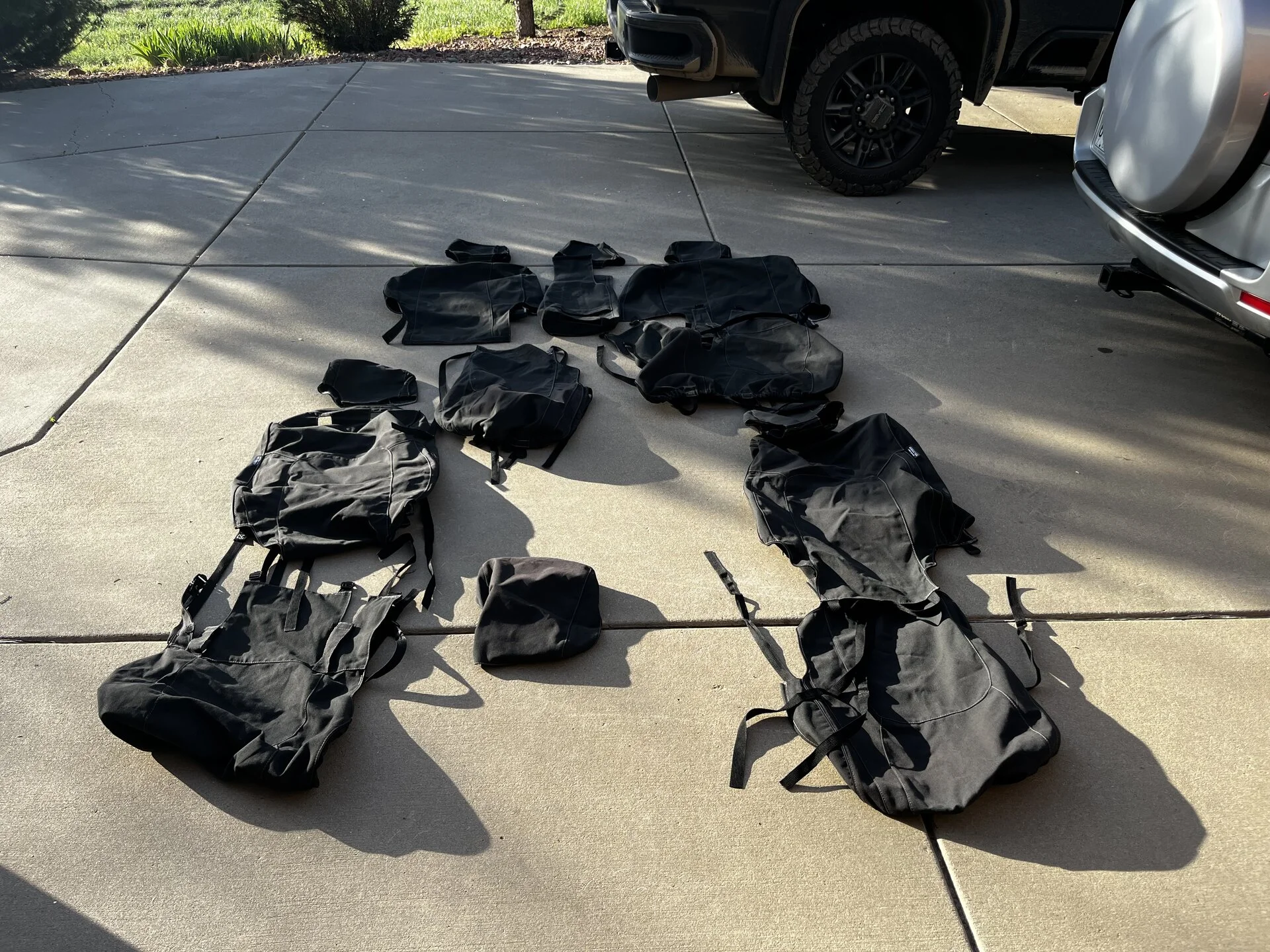 $450 Used Escape Gear seat covers 1st and 2nd row plus center arm rest. Charcoal tough canvas. Great shape
