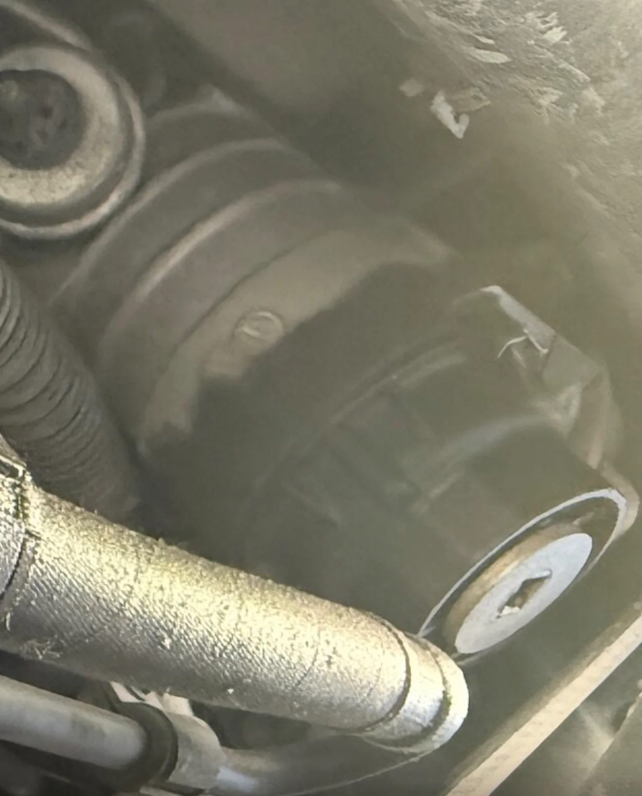 Nothing leaking from what I can see under the hood but one area only from under the car. Looks like a power steering line but what is that pump there that is leaking at the bottom? The right side has one too and it’s dry.