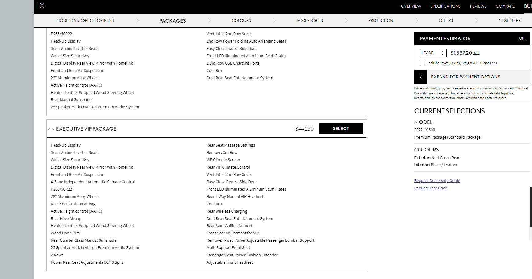 A couple of weeks ago there were reports of pricing for the LX600 released in Japan and what that would equate to in the US. Those numbers seemed higher than what people had been speculating in what we might see here in the US. Canada just released pricing and updated their website so you can now build out a new 600. That pricing, converted to US dollar, seems more in line. Looks like you are about $100k for a Luxury model which is what you’d have to bump up to for AHC. Now that Canada has their site updated maybe we will see an update in the US soon. I’ve looking to trade in my 2021 570 Sport for the 600.