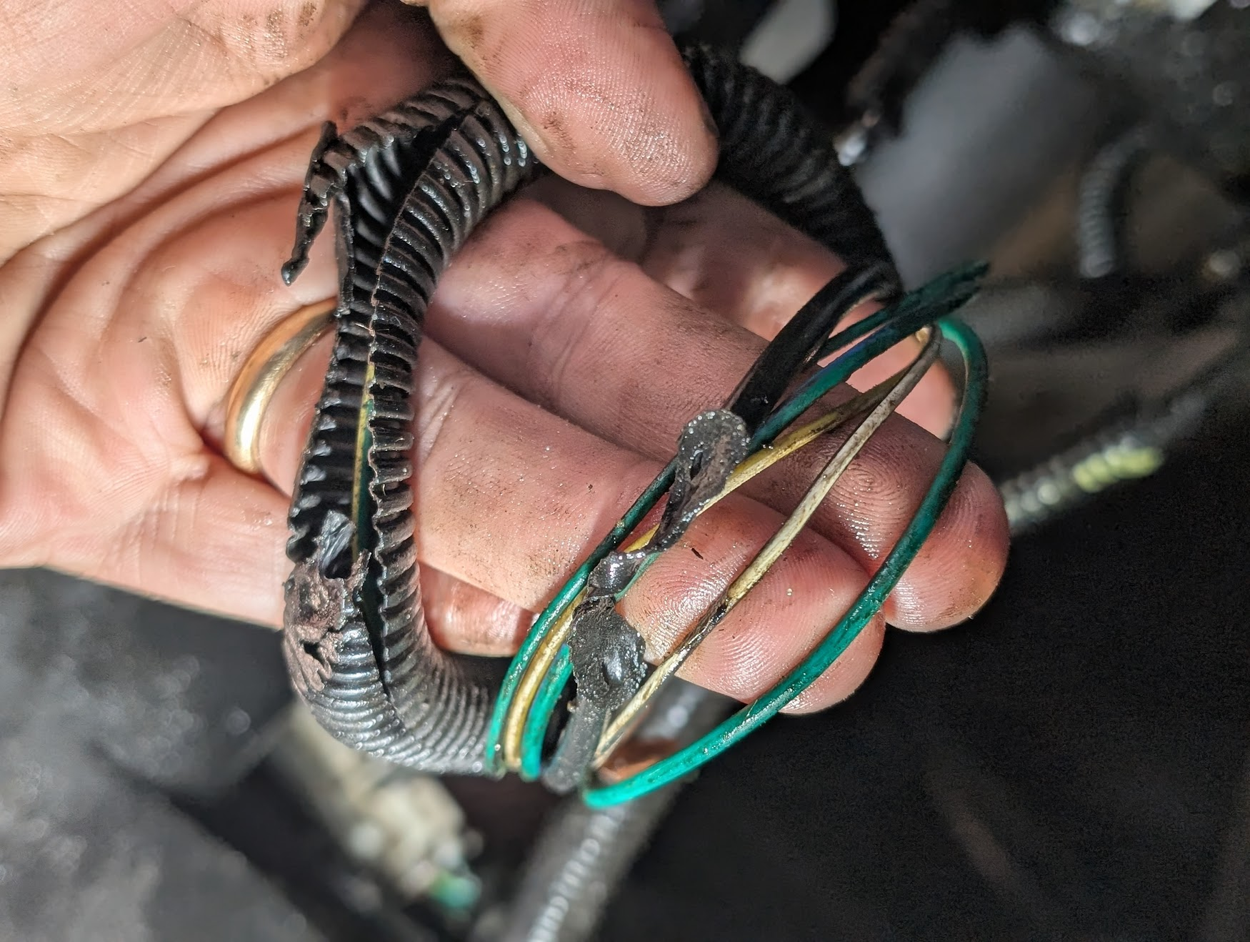 As shown above, I did have burn damage from the exhaust, but the issue wasn't there. It was a few inches higher and it was the only wire in the area damaged.