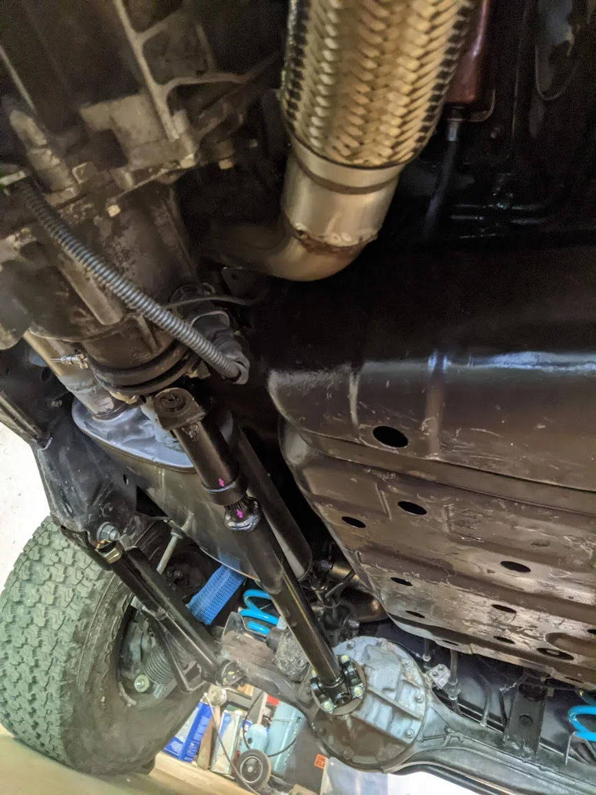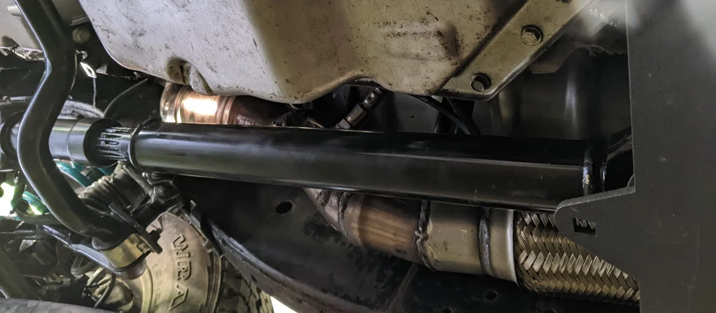 New extended length front driveshaft installed with new Toyota bolts/washers/nuts. 33" vs 31.5" Stock.