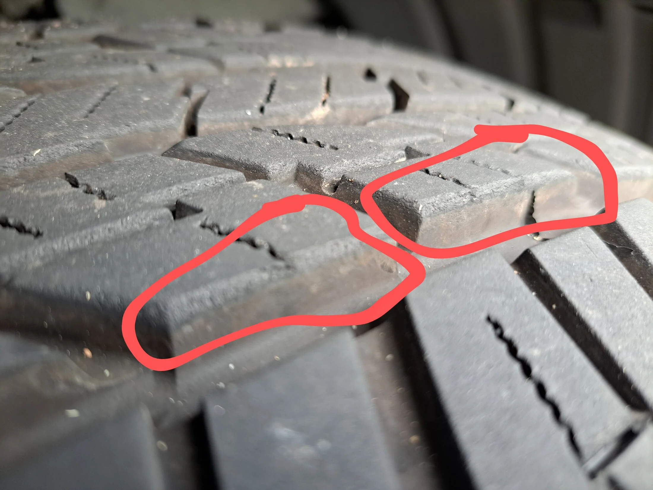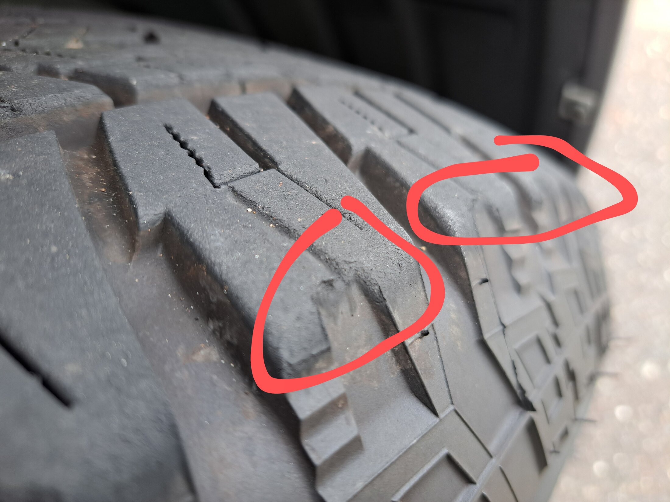 First 2 pics with circled areas are front tires, other 2 are rear