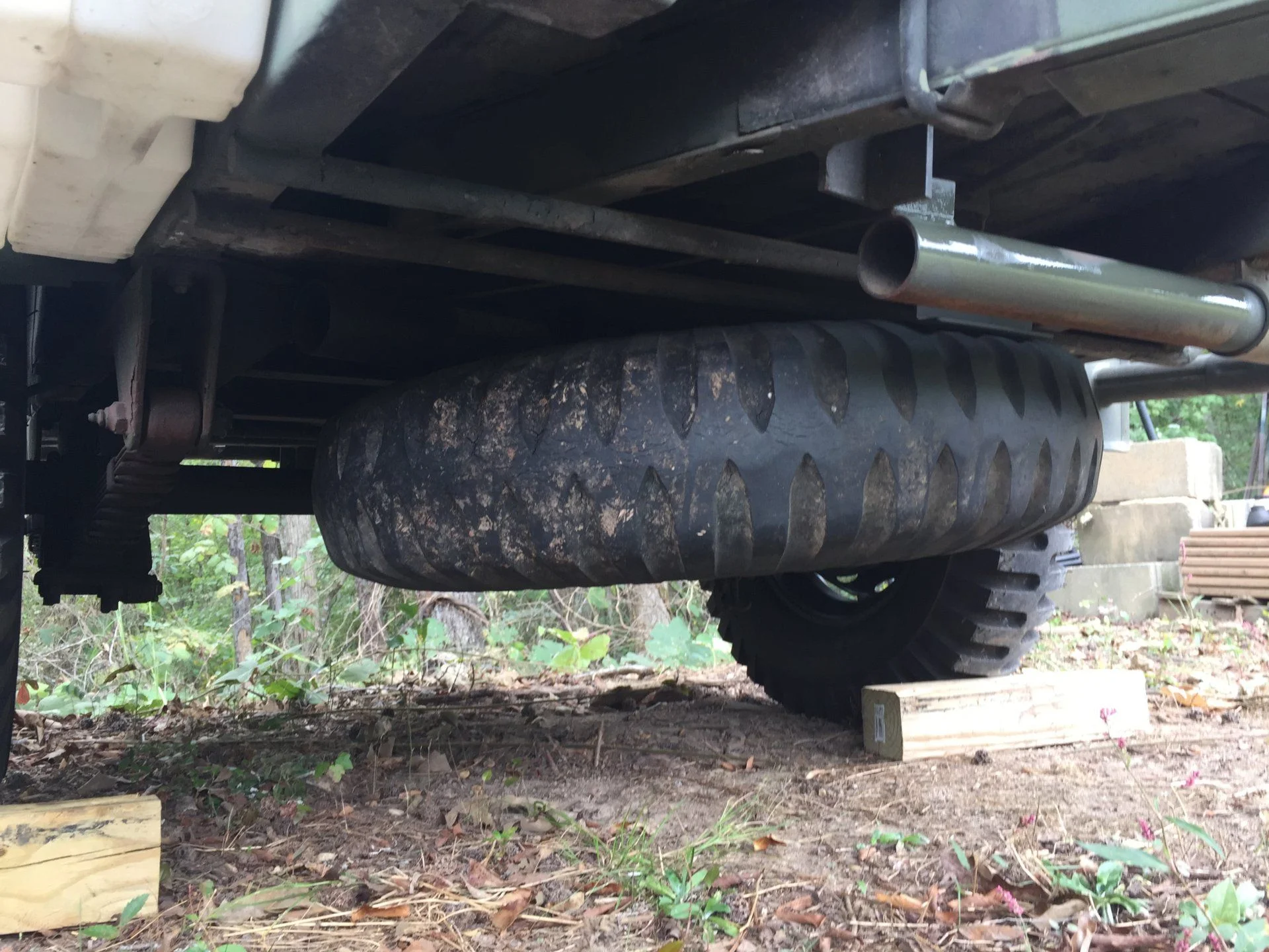 We first thought about replacing the wheels and tires to match those of our vehicle. Hmm… what if you change vehicles or use a different vehicle with a different hitch height? We decided to keep the original military tires and wheels. We did replace and grease all of the hubs and bearings, and we replaced both tires and tubes with new tires from Mitchell Tire (a great source for hard-to-find tires and such). We took the best of the two tires, replaced the tube, balanced it, and used this tire as a spare.