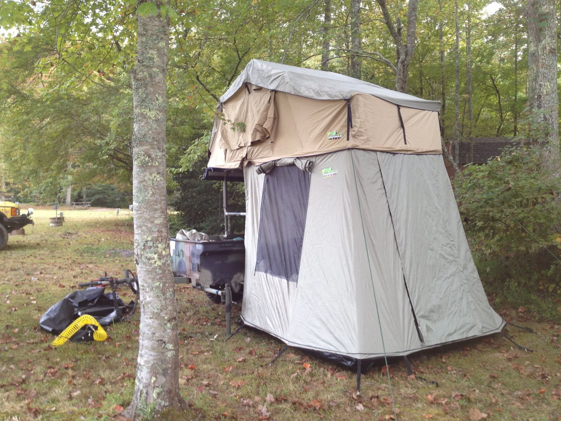 We really liked the idea of a RTT on top of a smaller trailer, but we found several problems. First, if you mount your RTT on a lid, then you cannot access your trailer once you erect your RTT. This means you have to take EVERYTHING out of your trailer that you could possibly need which didn’t work for us. We get a lot of rain and wind, so this was not ideal.