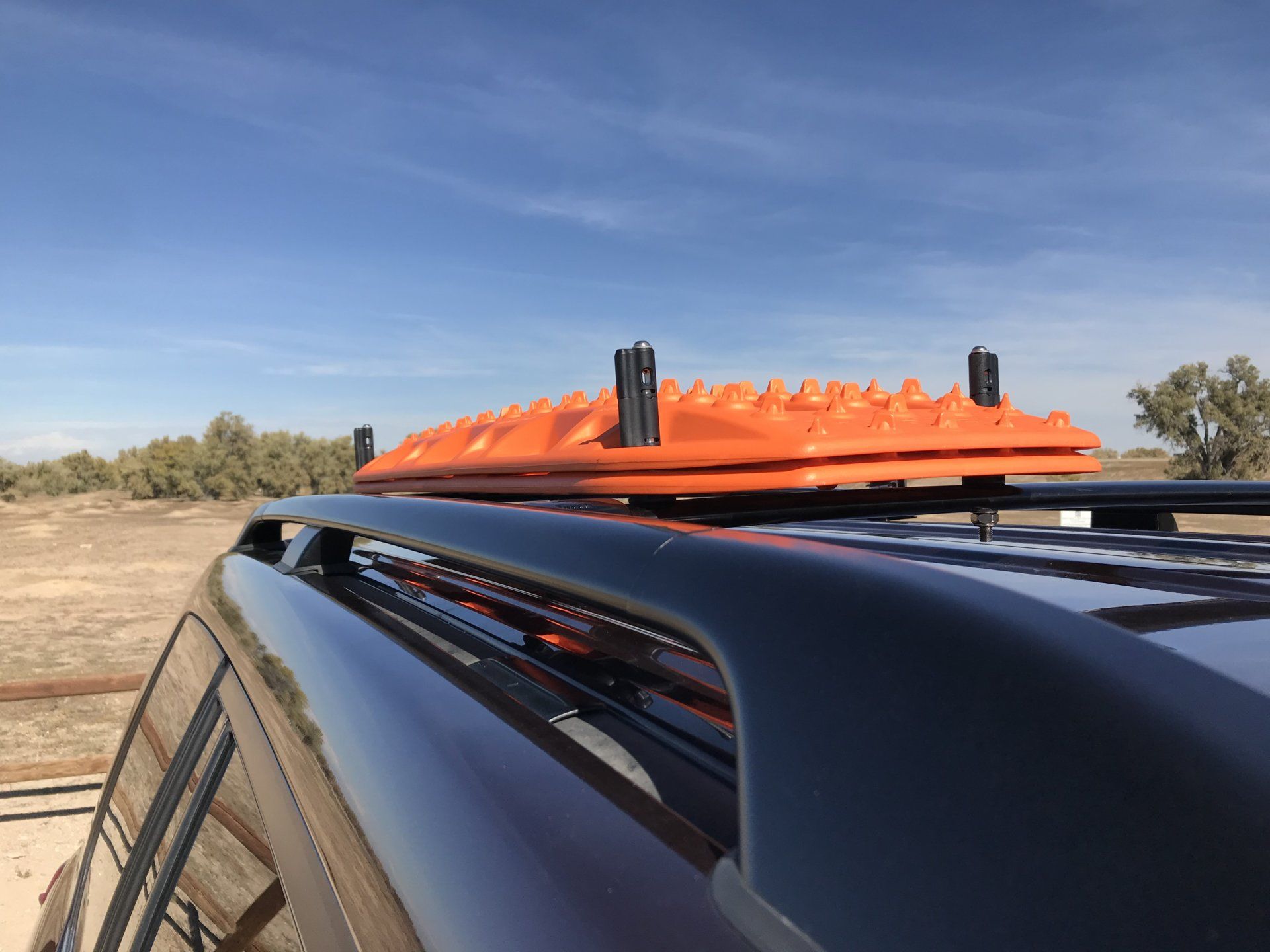 I mounted the Maxtrax on the roof with their universal mounting pin set. I drilled through the factory cross bars because I don’t really have a need for an aftermarket roof rack, and if I’m being honest I’m not a fan of them due to wind noise. I’m the most sensitive person I know to any creaks, rattles, squeaks, squeals, etc. and I have not found a silent rack yet other than OEM. Oh and I also have a full OEM rack in the crawlspace if I jack this one up. Fortunately it turned out just fine and clears the garage door at home by roughly half an inchI’ll add some small locks onto the pins and get some rubber caps for the bottom of the exposed bolts. Very pleased with how low profile it is, and best of all it’s totally silent even with the sunroof open.
