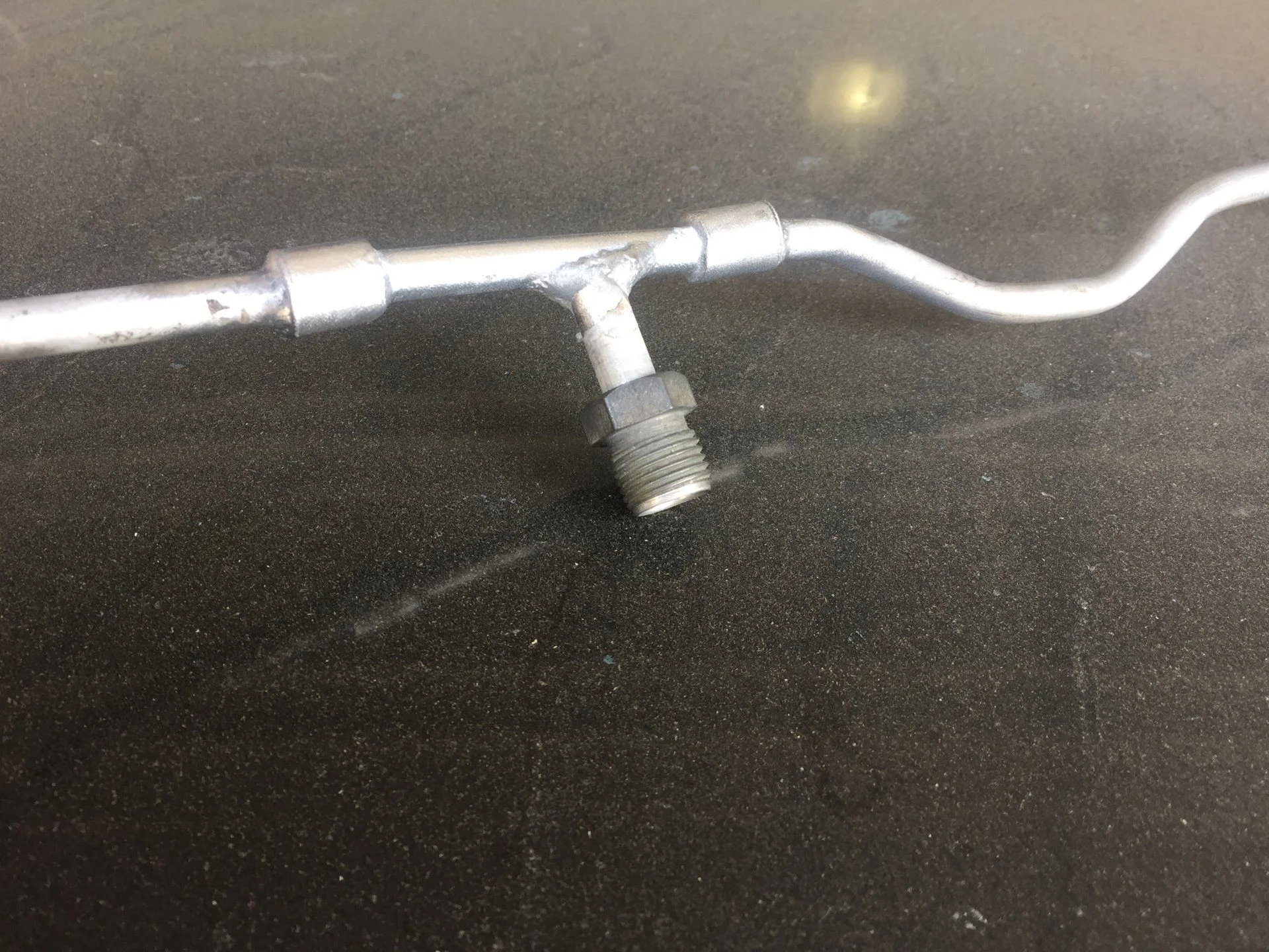 I can't visualize how that's going to attach to the condenser. Is there a 90 elbow coming off the condenser?Here's the other cutoff from the old condenser welded with #6AN fitting. This is connected to the tube right before the dryer.