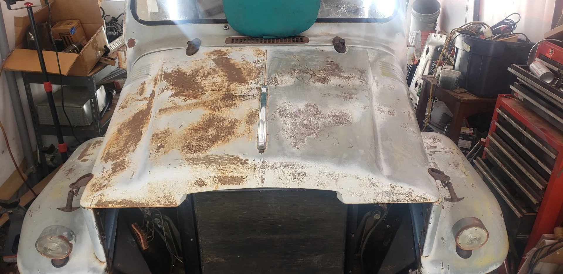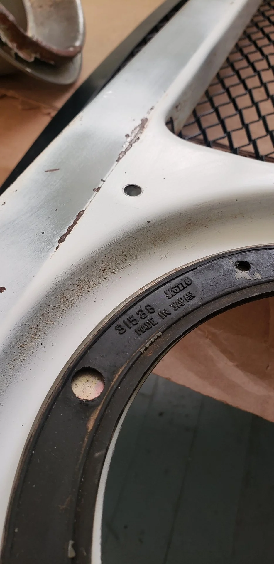 I'm a little torn on what direction to go on the bodywork. I cleaned up the rust stains on the front bib with some CLR, then threw some wax on it. I think I might run it like this for awhile.