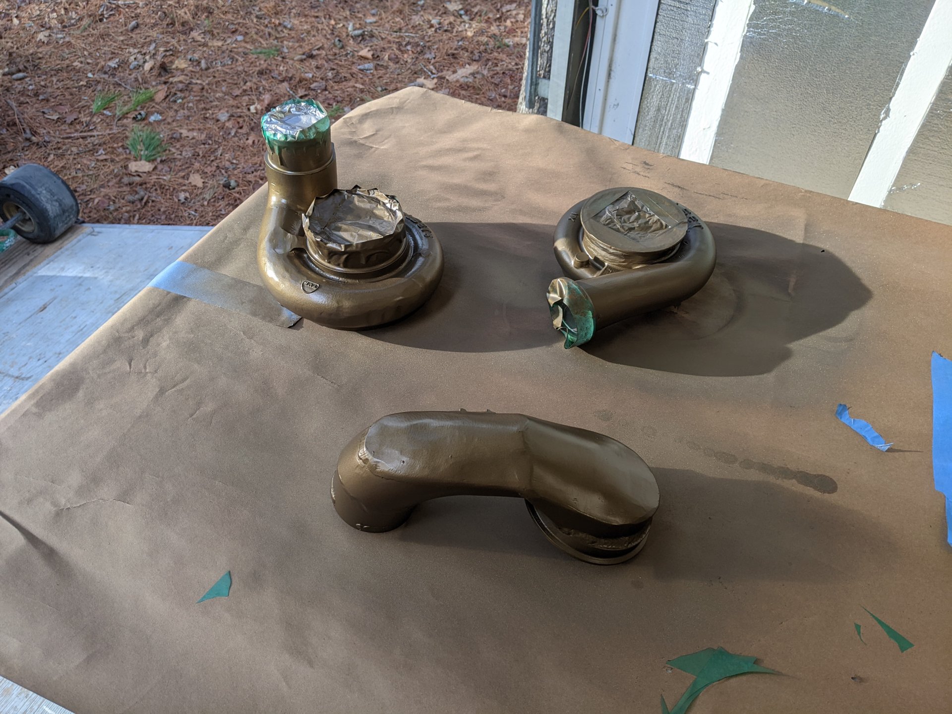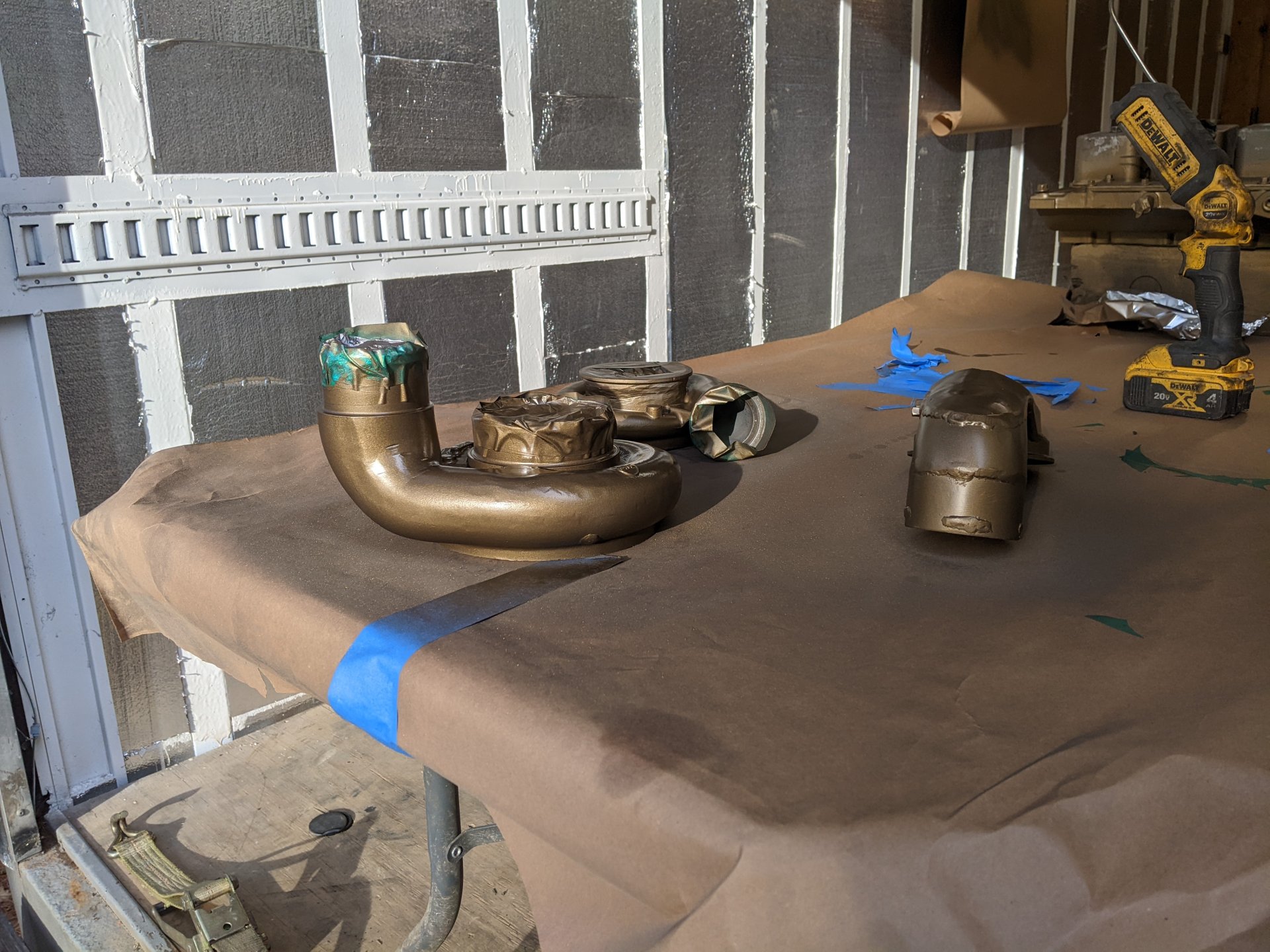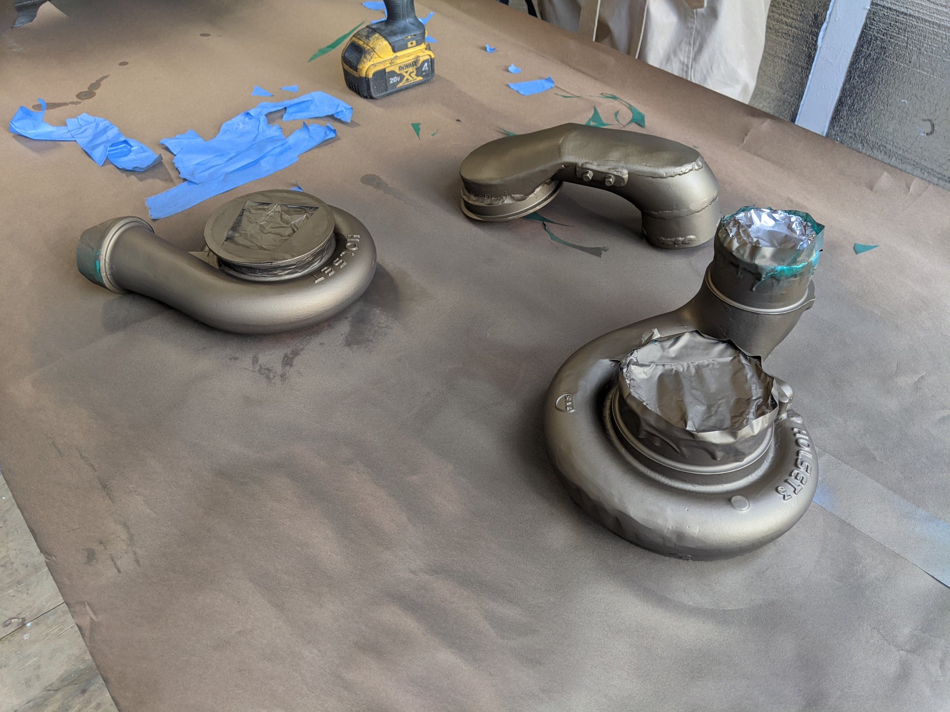 Lots of randomness today. Welded some pinholes on the exhaust manifold, welded on a plate and cut two 1/8" npt ports in the intermediate charge pipe for future sensors.