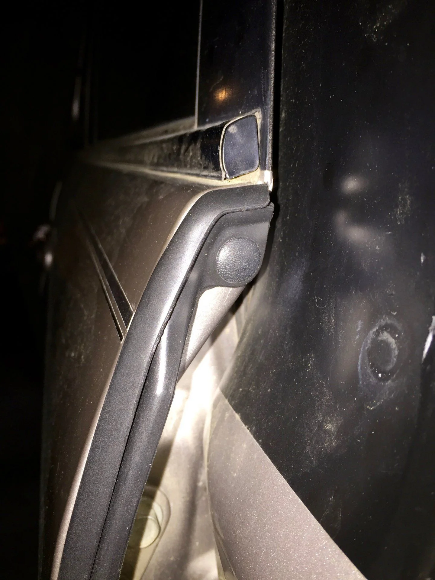 Once again due to the fact I used flash and perspective, it does look misaligned in several places. Its just another one of those pictures doesn't do it justice things. If you close the doors and run your finger along the joint, it's perfectly flush with the tops of both F&R doors. In the very last pic you can see the "~2" piece of plastic" at the bottom that sandwiches the door I referenced in my last post (failed to take a pic of the fully installed at that angle). I think this goes without saying, but do thoroughly clean the door jamb before installation. That combined with the amount of force you can apply to these strips to permanently seal then will maximize adhesion and longevity.
