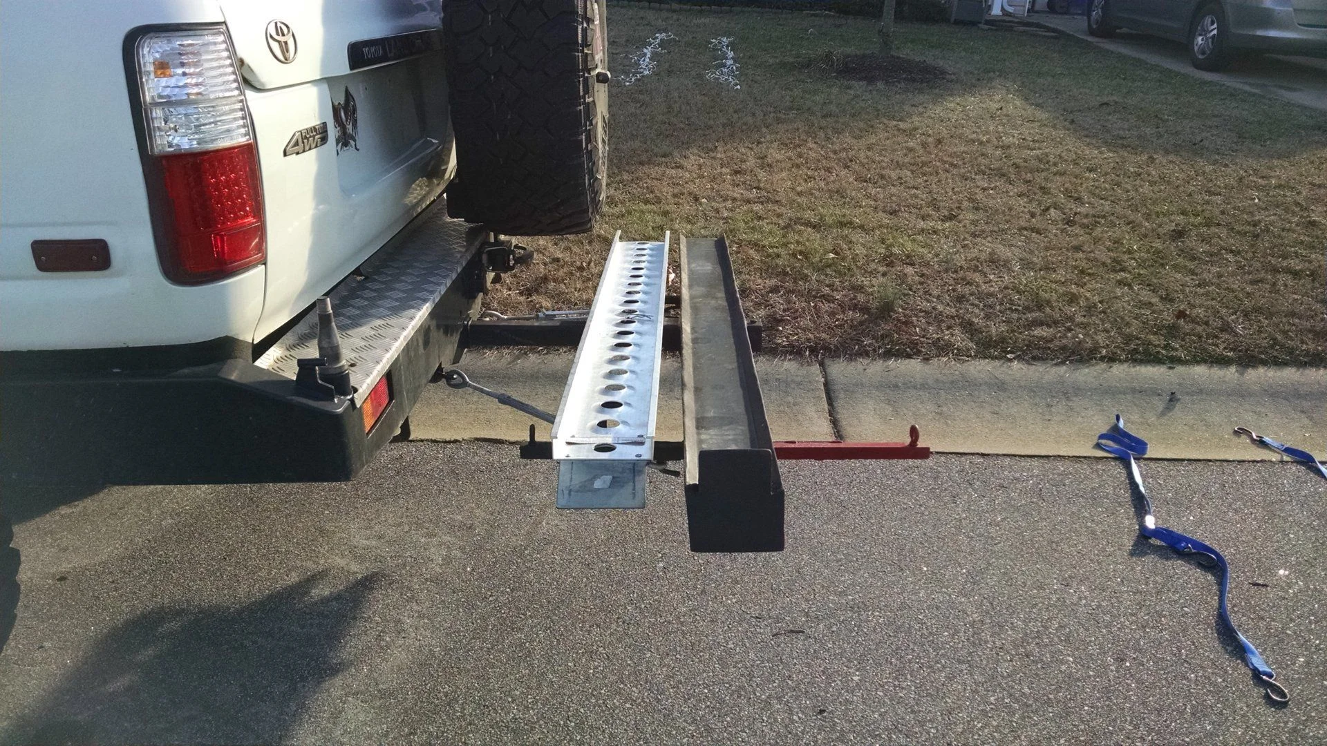 I have a 4x4 labs rear swing out bumper with the tire carrier and ladder. I would like to get a hitch mount motorcycle carrier to carry a small 250cc dual sport motorcycle. I don't worry about the weight. I will do airbags and springs in the rear. But does anyone know if a bike on a carrier like that will clear a tire mounted on the rear swingout?