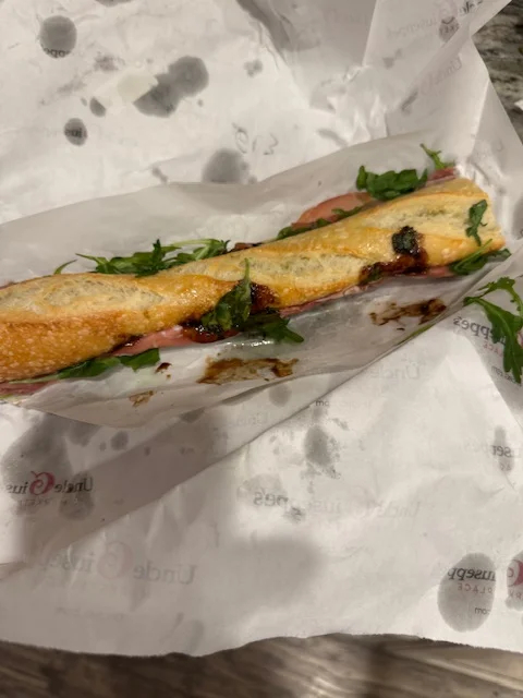 Oh, the sandwich is Argula with prosciutto and balsamic glaze on a really great baguette