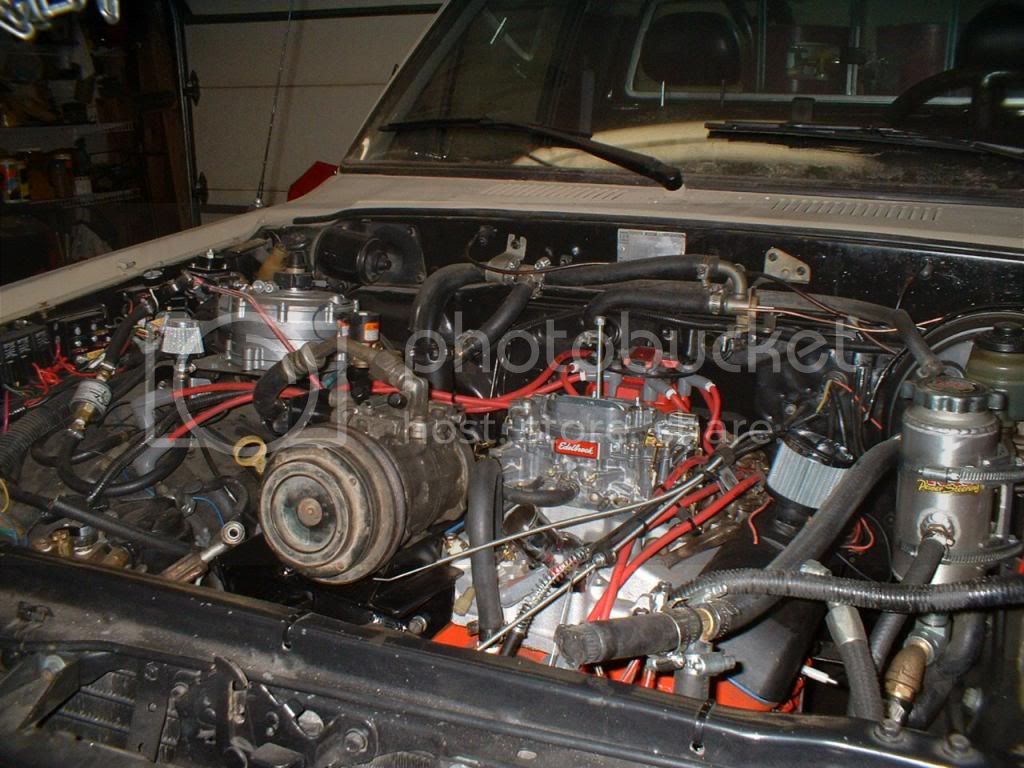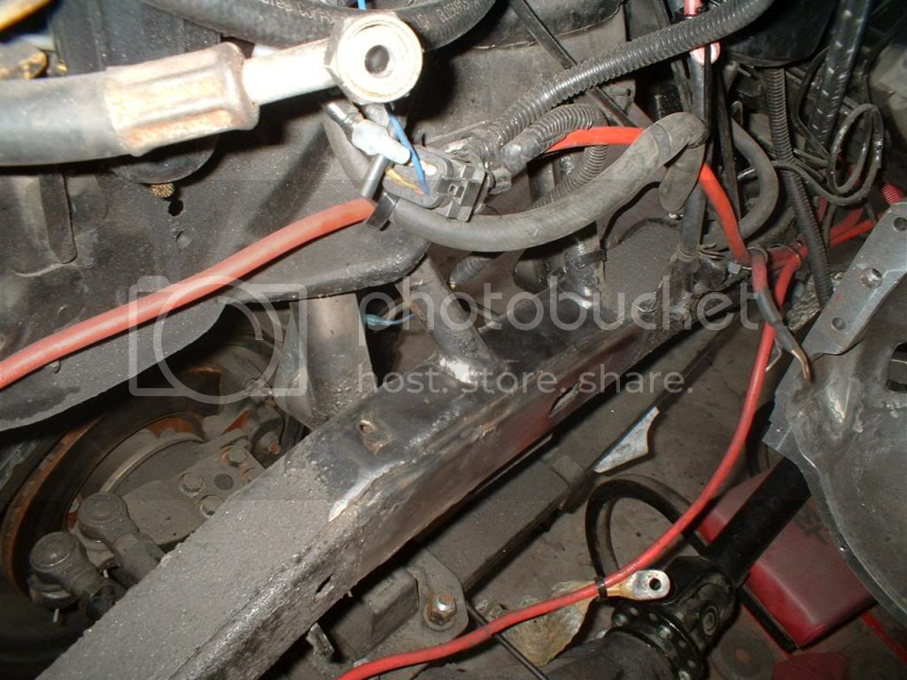 After doing all of the research on the 4.3 swap, I was a bit concerned on the firewall and distributor location. Well on my setup there is about 1 inch between the distributor cap and the firewall, no sheet metal work needed here.
