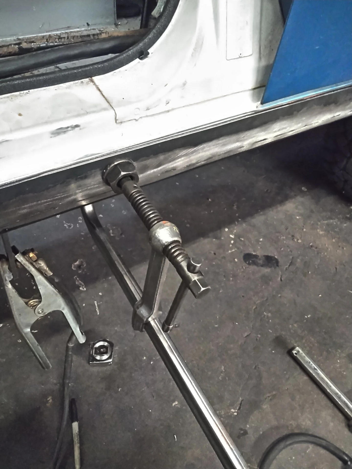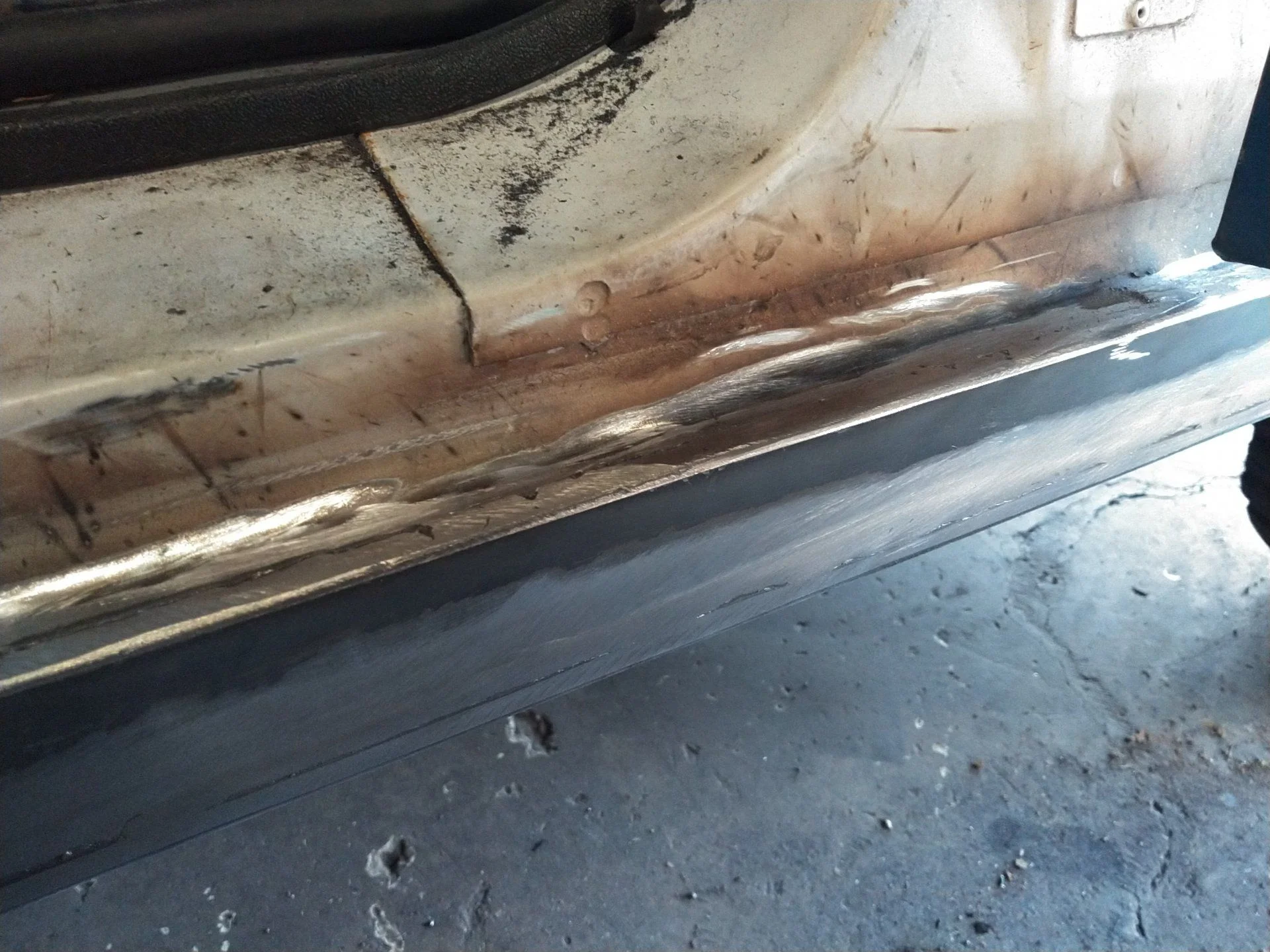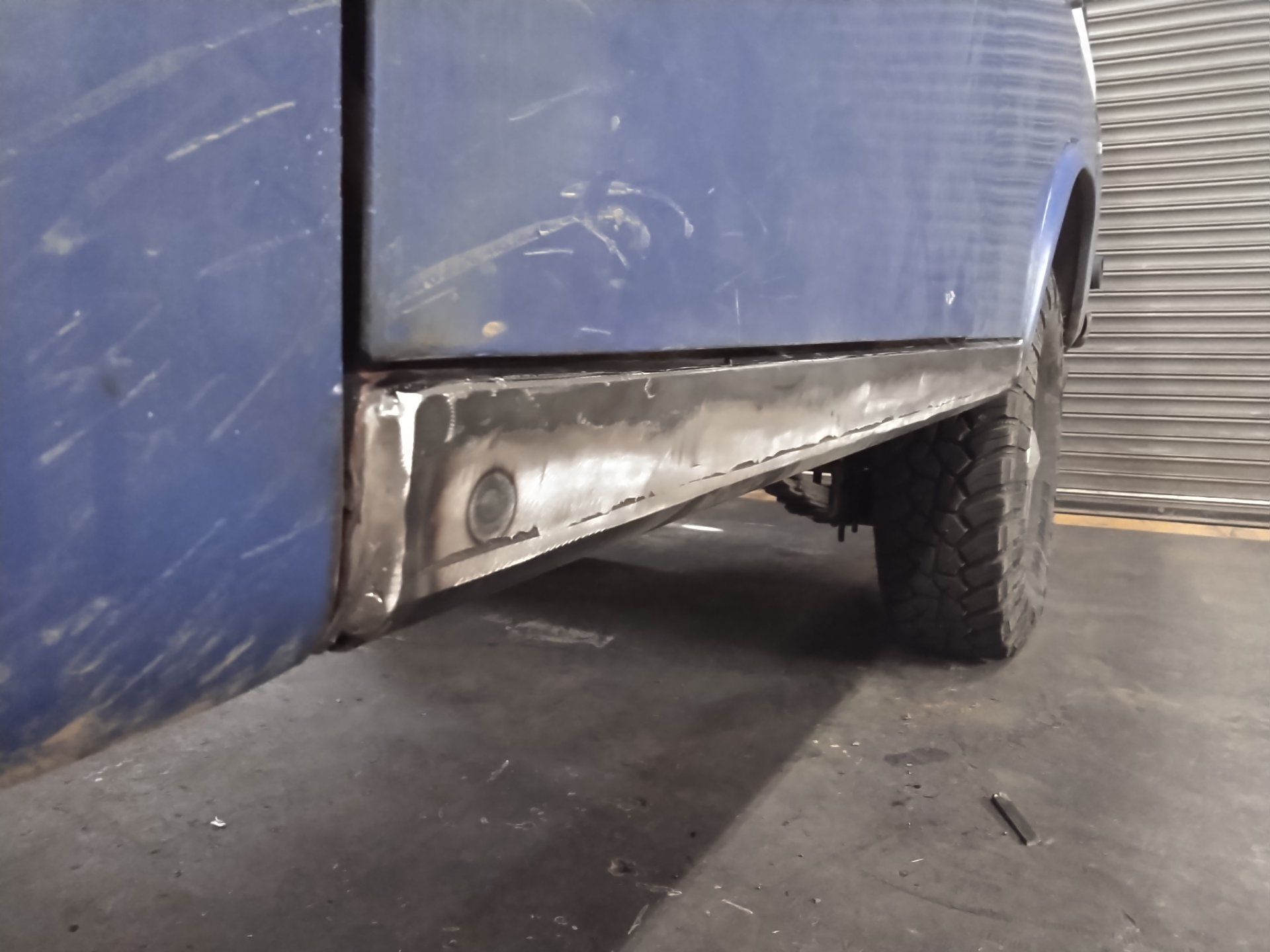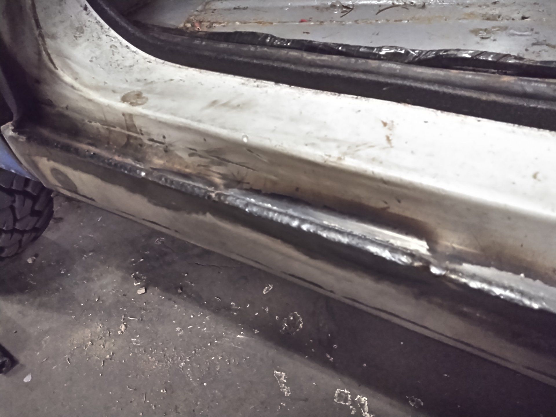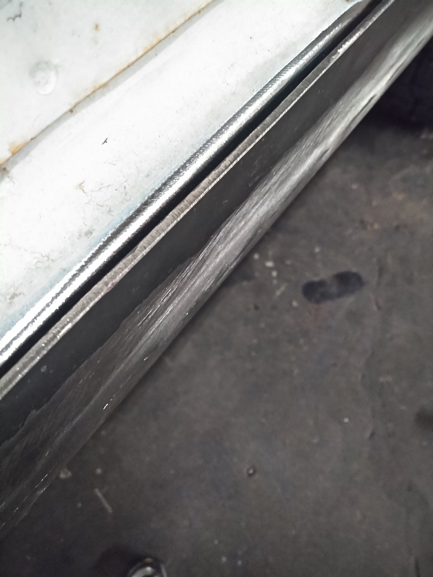 I definitely still have some more cleaning up to do before it's ready for paint but I'm happy that I'm getting the rockers closer to complete. I was lucky to have some solid material to weld to on the body. I Only had one spot where the weld blew through the metal and was able to easily repair it. I also welded the bottom of the rocker underneath to the pinch seam to secure it to the body.