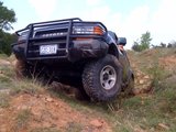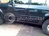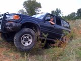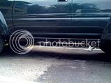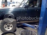 This is the truck lifted up by the slider with both driver side tires off the ground...