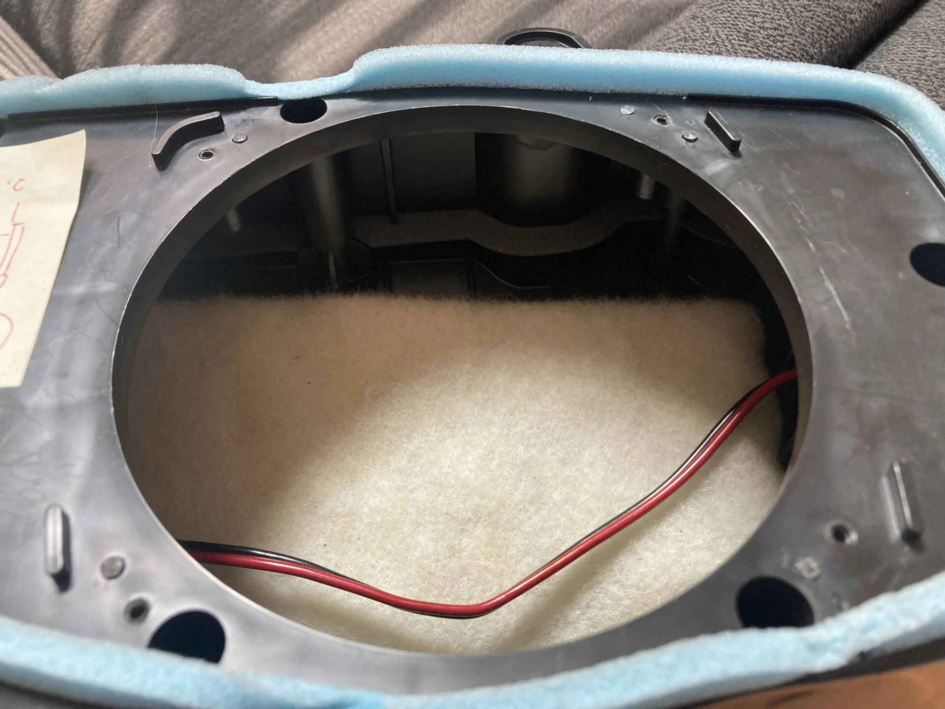 While I was figuring out the amp, I heard some bad noises from the subwoofer one day, so I pulled it to take a look. The cone was frozen, it would not move. I eventually got it to move, but I did not want to put it back in service in case it froze again.