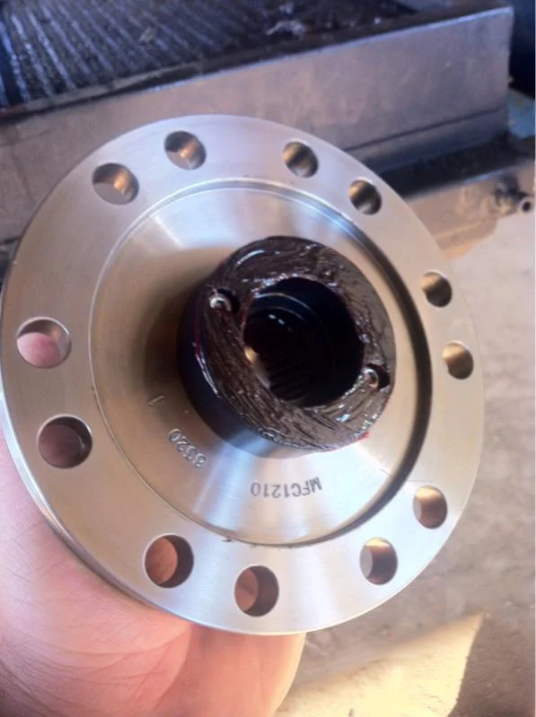 I bought a new bearing to go on the replacement half of the diff, but if you didn't you'll need to press the old one off the half of the diff you just took out and onto the new bit. This is the replacement part that was supplied in the "Marks Adapters" part time 4x4 kit that I have. It just bolts straight back in place of the old part. It has a nylon bush that now supports the front drive spider gear in the differential, which they say to grease up upon installation.