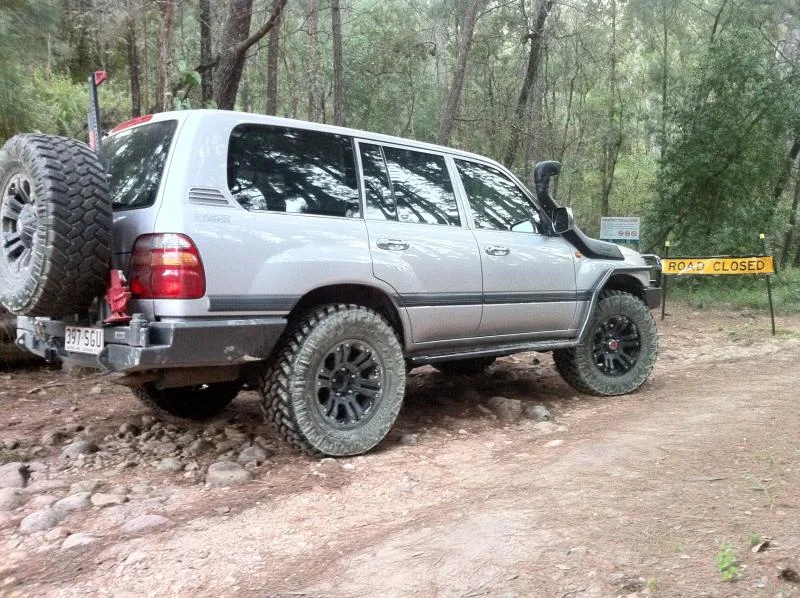 The ARB Bullbar and Side Rails - Side Step Combo are at Rockhampton Powdercoaters at the moment, getting blasted and coated as they were in pretty bad condition and a little rusty. I get them back on Tuesday, when I'll fit them, then I'll do a final adjustment on the height and take it for a wheel alignment.