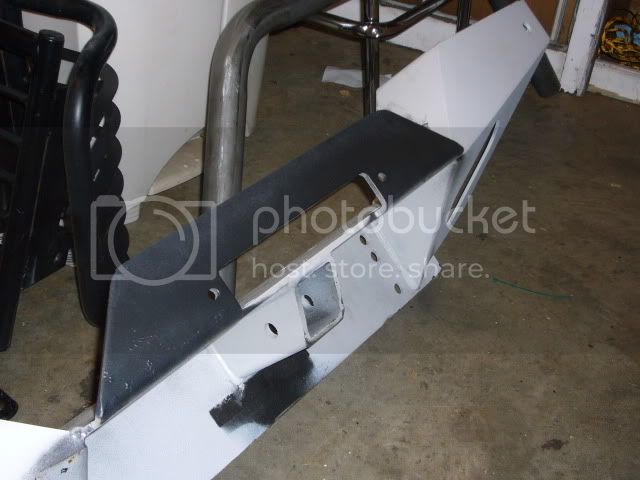 It is built off of a Trail Gear winch plate with wings added to it. The wings are gusseted in the back and the bumper is pretty beefy. I will post some pictures of it once I get it all painted and mounted.