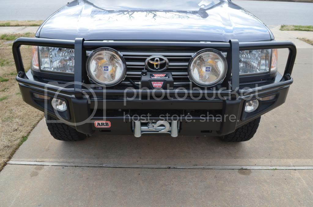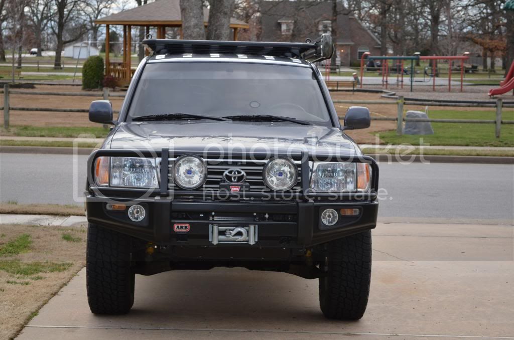 As of lately, ARB Front, Warn VR 12,000 LB ( expecting factor 55 prolink any day), Powder coated Rhino Rack Pioneer rack, Slee batt tray plus new GRP 31 Battery, ETC..