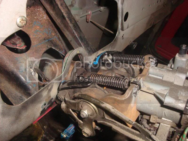 Ive effed w the seat brackets and pushed the drivers seat as far back against the rear wheel well as I can. Decent improvement that isnt helped by the fact the seat itself has practically no adjustment. So now with the seat moved back and the tilt column its not too bad. Seat all the way back, column tilted one or two clicks down from all the way up.... untill you put the pedal springs in. The goddamed things stick out a foot from the firewall! I started getting flashbacks of trying to plow with the damn thing this winter and my legs cramping up like a mofo....