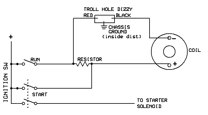 The purpose of the resistor is to drop the voltage to the coil while the engine is running. When cranking the engine the resistor is bypassed to give the coil the full battery voltage. When cranking the engine, the battery voltage drops from the load of the starter motor just when you want the hottest spark to start the cranking engine. This is why the resistor is bypassed and full battery voltage is applied to the coil to create the hottest spark to help start the engine. After the engine starts, the resistor is in series with the coil to reduce the voltage to the coil so the coil runs at a lower voltage (6 - 9 volts) which is good enough for a running engine and the coil doesn't overheat. The wire from the ignition switch (start position) that goes to the starter motor solenoid also goes to the coil so when the solenoid is powered (engine cranking) full battery voltage is also applied to the coil.