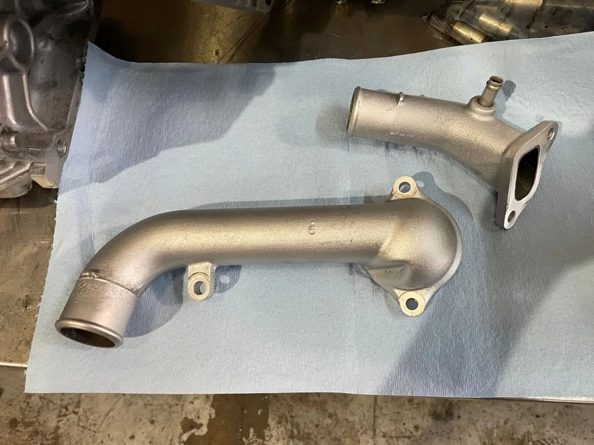 First up, Engine has had a thorough go through by Tor. Cylinder walls were described as near perfect, normal wear on the cam and a valve adjustment not yet necessary. Vaccum Pump Bearing has been replaced, new gaskets, water pump, thermostat, idler, timing belt, water pipe 1 and 2, injector seals, and main pulley. Intake Manifold was vapor honed (twice, I will have more on that later) and clear coated. It came out a bit more grey than aluminum which was something I liked. Also, I had Torfab paint the block and head a dark grey which will make spotting oil a bit easier. I know that a lot of people paint their blocks black but in low light and under the hood I think this makes spotting leaks a bit more difficult, plus this is something different than everybody else. Also had the valve cover painted black, raised letters sanded and then cleared. Heat shield on the turbo and the exhaust manifold were ceramic heat treated good up to 2000 Degrees F, the shields silver grey and the exhaust manifold in black.