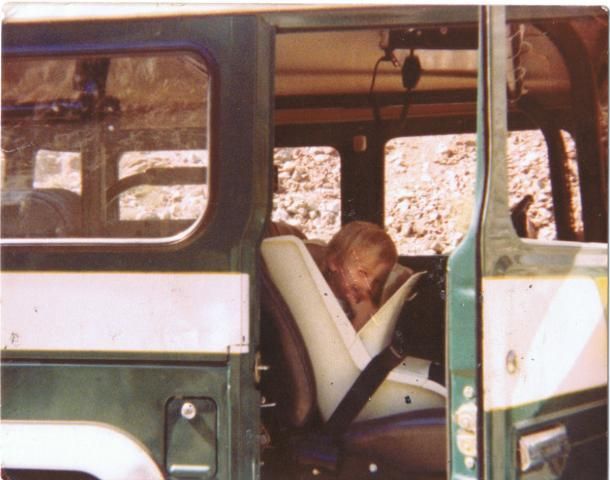 1976: Me in my car seat in Dad’s 1975 FJ40. Dig the safety!