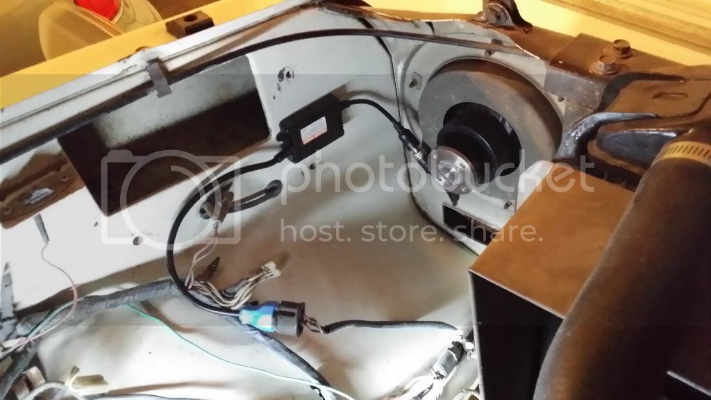 Installed! The transformer comes with double sided sticky tape (or two bolt holes) for mounting.