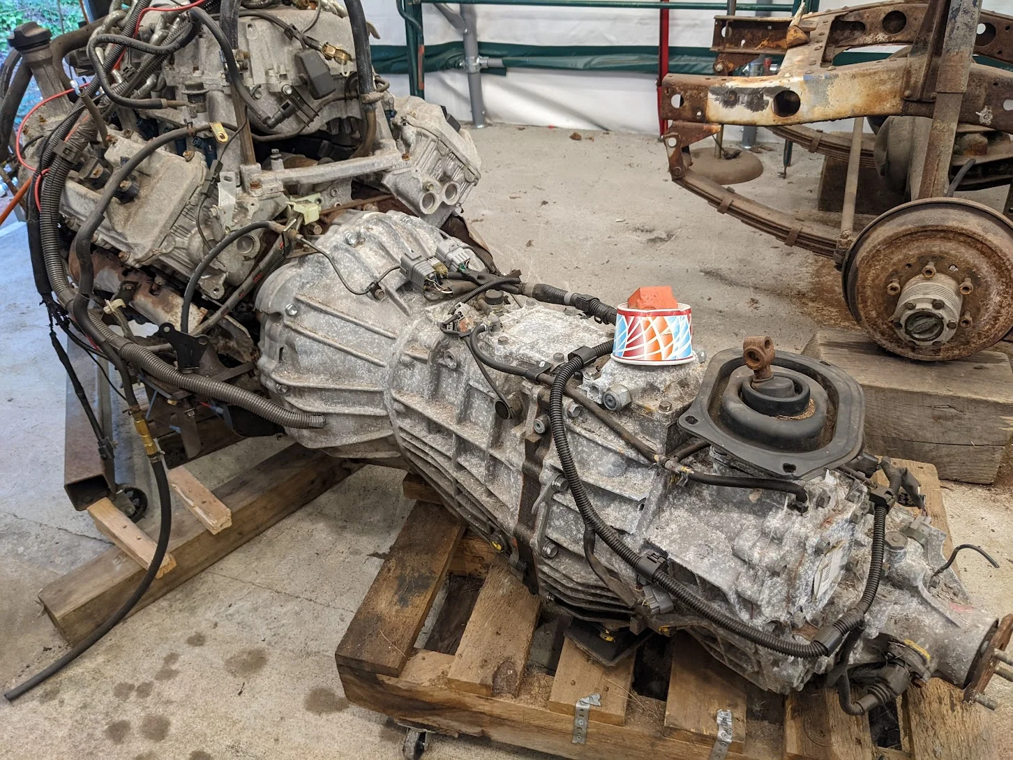 OEM Toyota H151 manual 5 speed transmission and transfer case. Said to have 13k miles on it. Sourced out of Australia where it was originally hooked up to a 2003 100 series with a 2UZ (a UZJ100R-GNMNKQ). Includes full time case, bellhousing with fork complete, pressure plate, clutch master, clutch and brake pedals, engine ECU for the manual trans, driveshafts (to use to build correct length ones) crossmember, shifters, 2 CDL switches and maybe some other small bits...