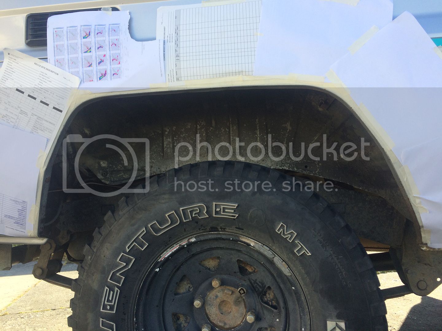 The inside of the rear wheel arches was bare of any coating, so I thoroughly cleaned, degreased, rust-converted them and then painted with rattlecan underbody liner. Also hit the entire chassis with fish oil at the same time.