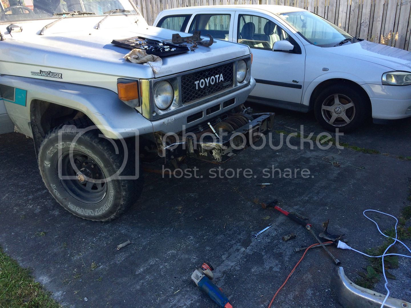I didn't like the big chrome shelf bumper so I removed it and hit the winch housing with the angle grinder to clean it up a bit. Have some new parts being fabbed to reduce the profile of it a bit, and a new nylon rope and Hawse fairlead, hope to get that all fitted in the next week or 2.