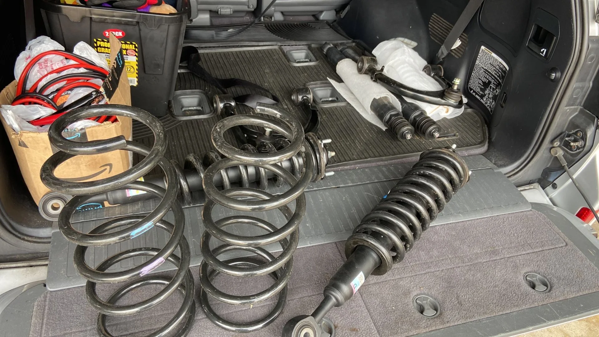 Supposedly the stock suspension on each of these vehicles, was removed by Ed Martin Toyota in Noblesville, IN so that aftermarket suspension could be installed before the L.C's were put on the lot. The stock suspension was included with the vehicle purchase.