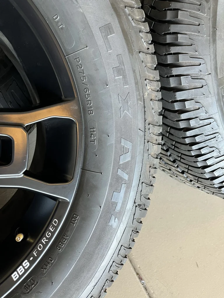 Brand new dealer takeoffs. 18” Tundra TRD Pro Wheels with Michelin AT2 Tires. These are OEM BBS forged 18” wheels with 100% tread life on the tires. Taken off a brand new Tundra when they went with aftermarket wheels. If you know your OEM wheels, these are the ones to get. Wheels are in perfect condition, no blemishes, and the tires are brand new. No scratches on any of the 4 wheels or scuffs on the tires. Tires are perfect and mounted/balanced. 275/65/18. Stored inside. I was going to put these on my Land Cruiser but decided to go a different direction. They will fit Tundra/LX570/Land Cruiser/Sequoia and possibly others. They are located in Sun City/Phoenix, AZ