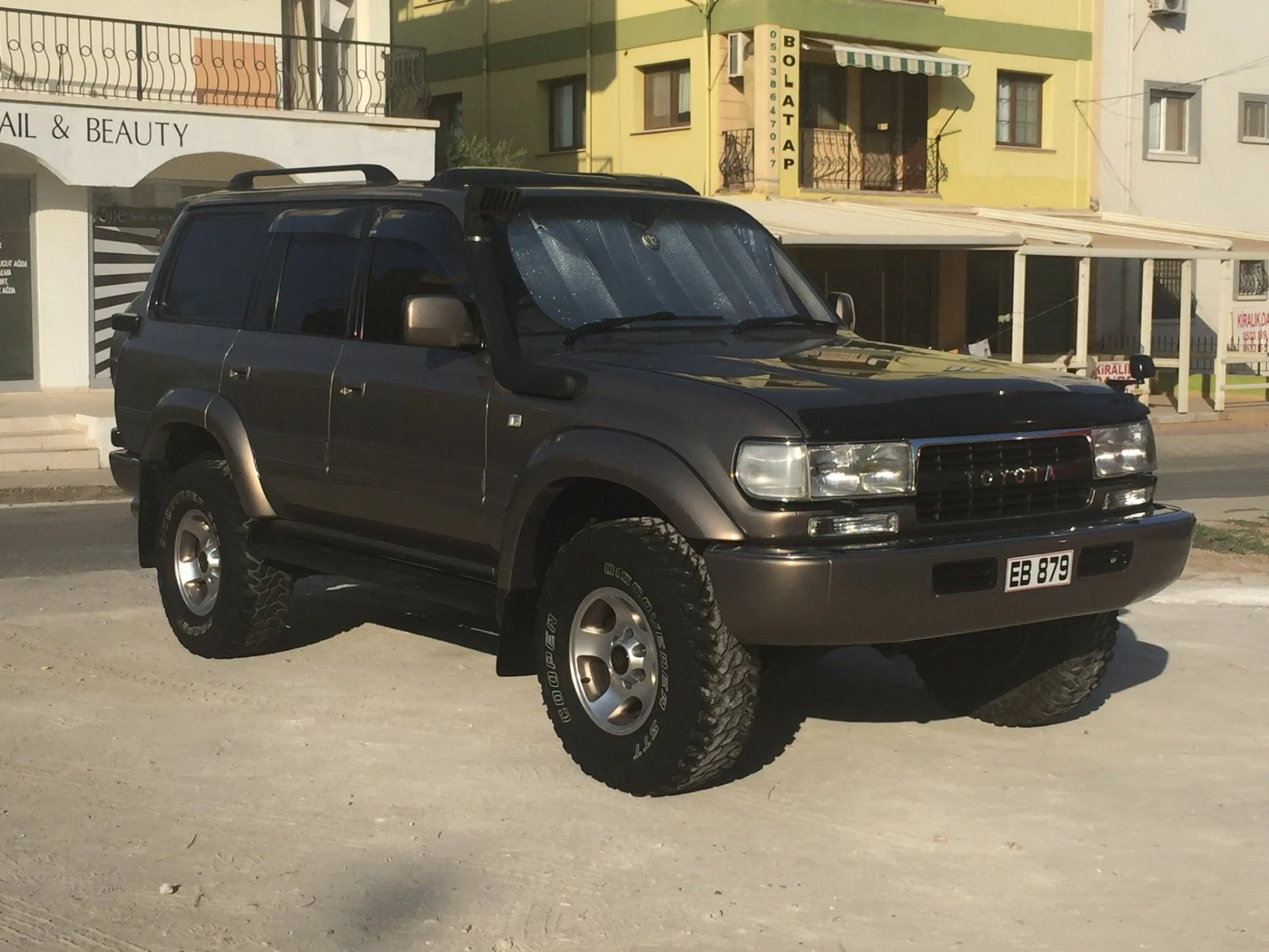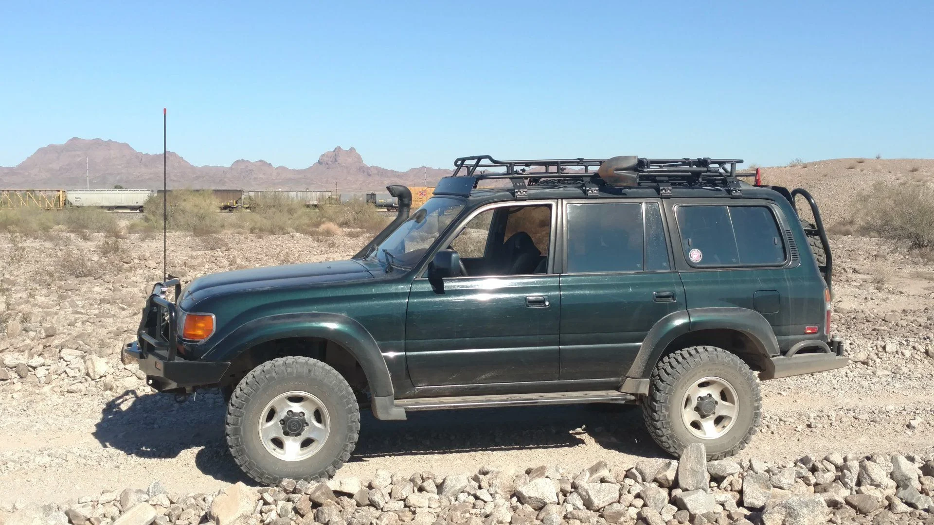I almost have your twin, dark green, small 2" lift, 285/75/16 STT pro, TJM front bumper, Labs rear and Gamaviti rack. All different from yours but real close looking. Nice trick!