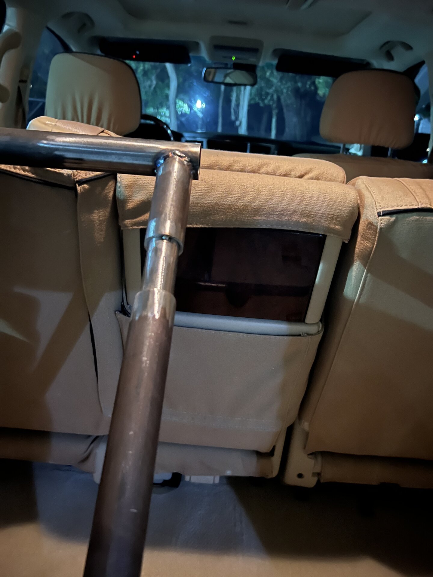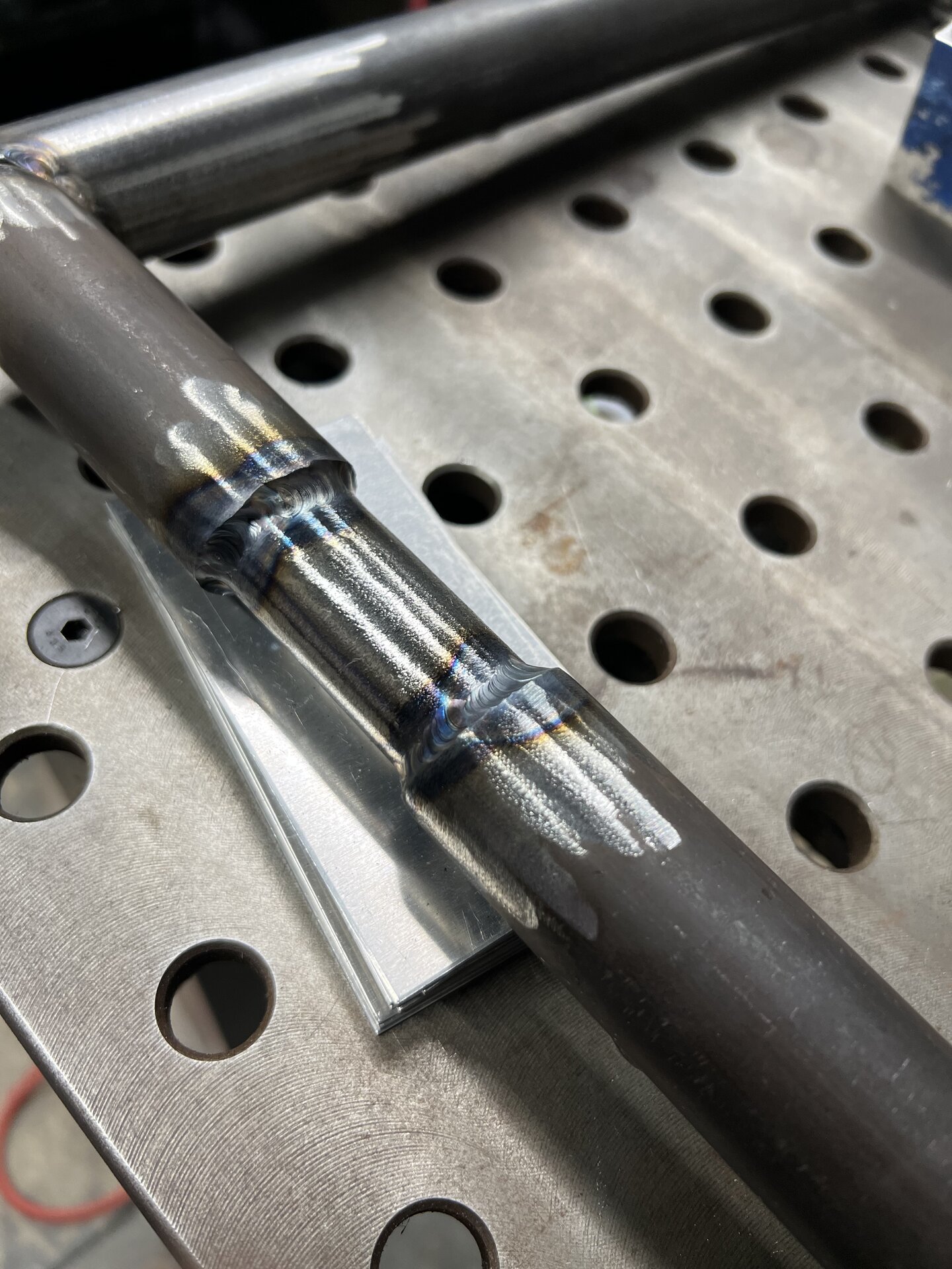 All DOM .120 wall, feet are 1.75, rest is 1.25. Used 1/8” aluminum spacers below the feet to clear the floor pan ridges, then grade 10.9 bolts to the factory holes. The 37 spare rolls over the front bar clearing the roof by about 1/4”. Side braces keep tire located nicely, and the double strap should keep any movement to a minimum.