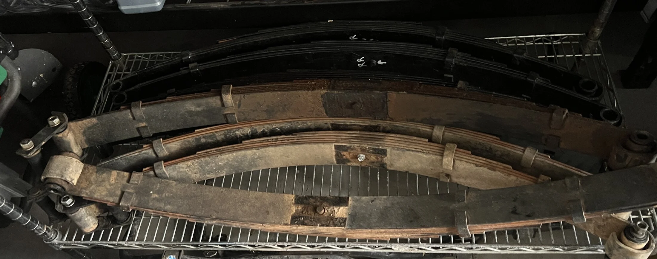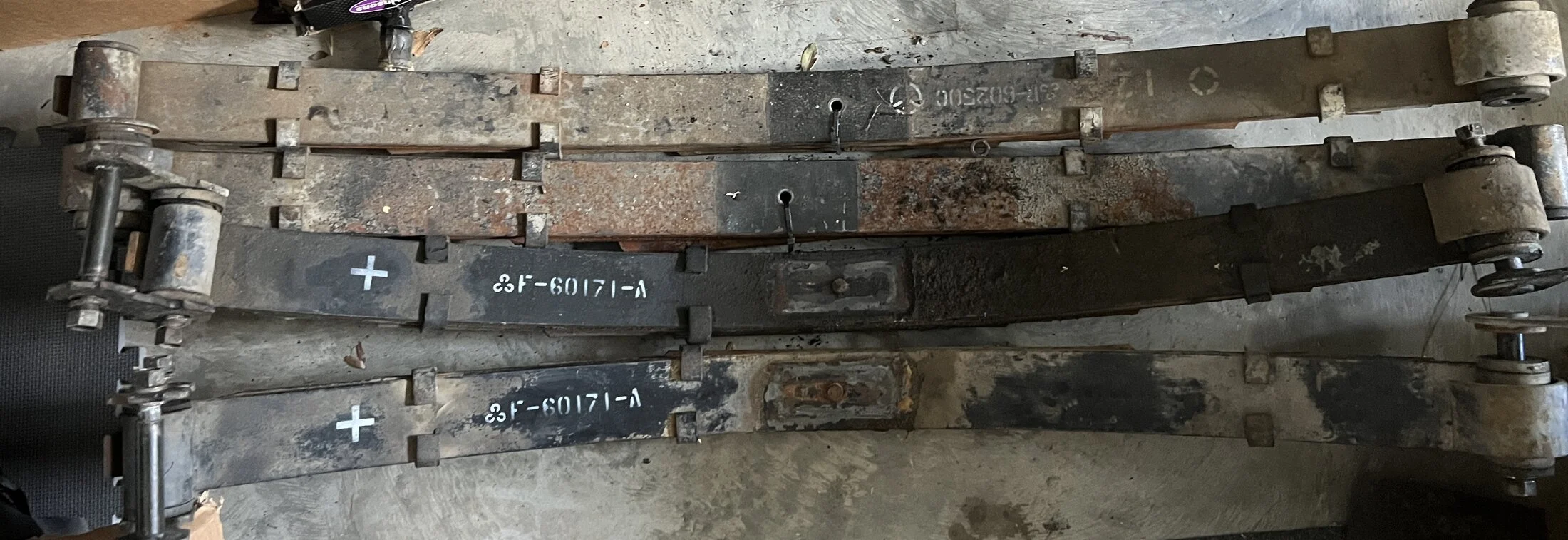Suspension is all brand new mileage wise, technically like 9 years old, but it's been in the garage since we've had it. It is rough country springs and shocks, but I pulled a couple leafs so it rides less like a board now and a little smoother. Has CCOT shackles I think.