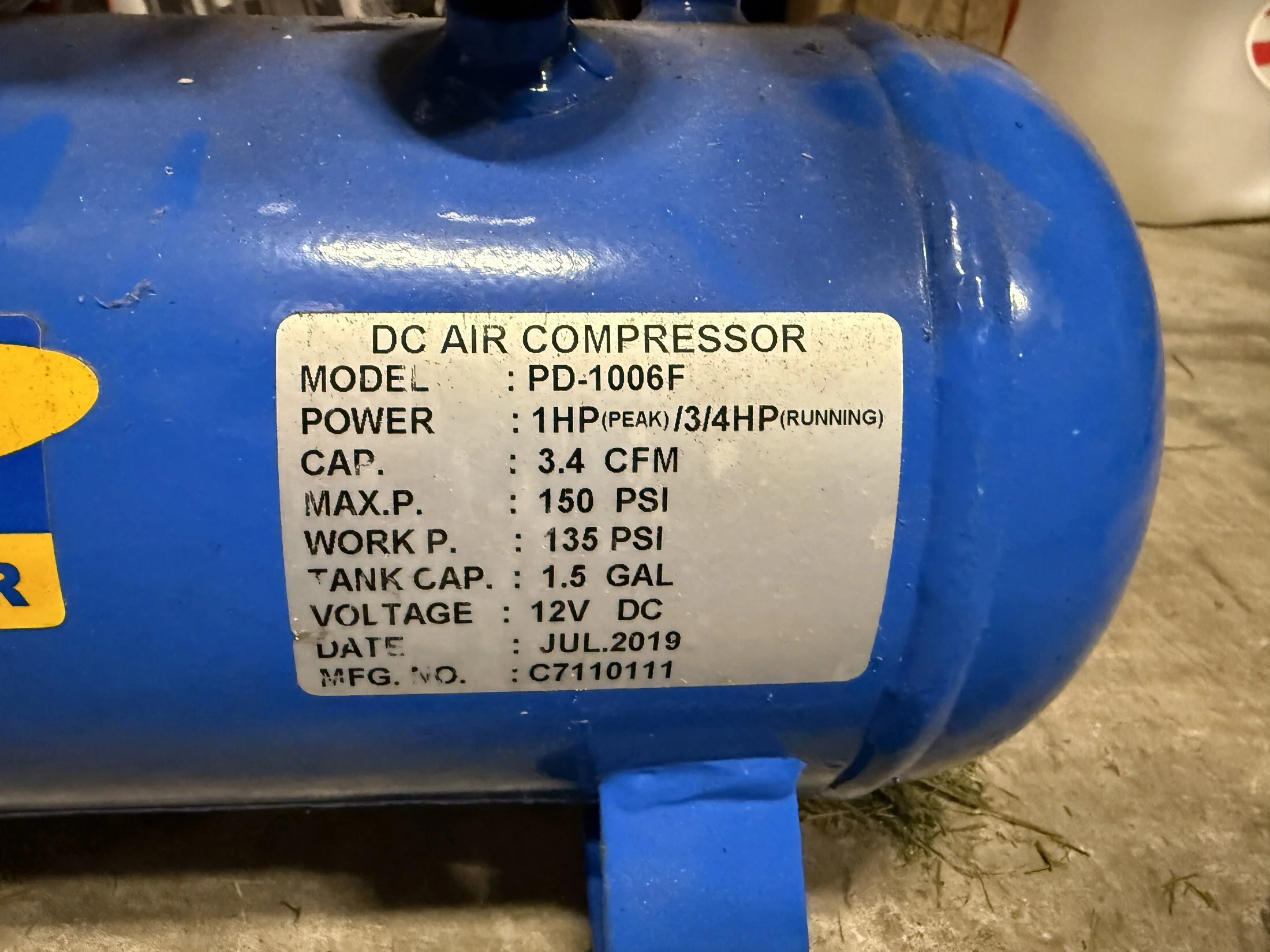 Puma PD-1006F 12v DC air compressor. Bought it with plans to put it in the 60 but realize I don't want to give up the space to mount this with my current layout. Bought it from a member here. Asking $200 OBO