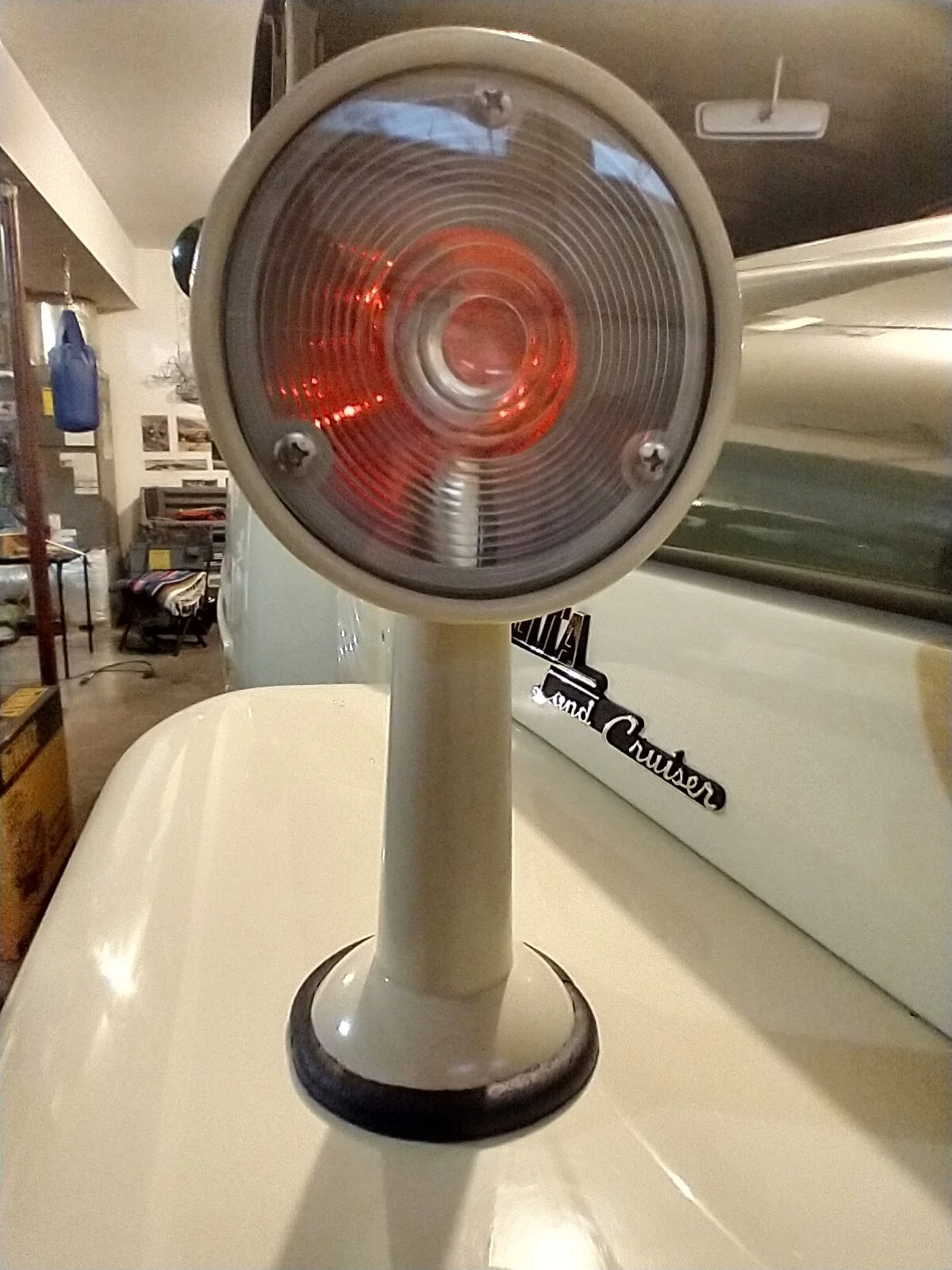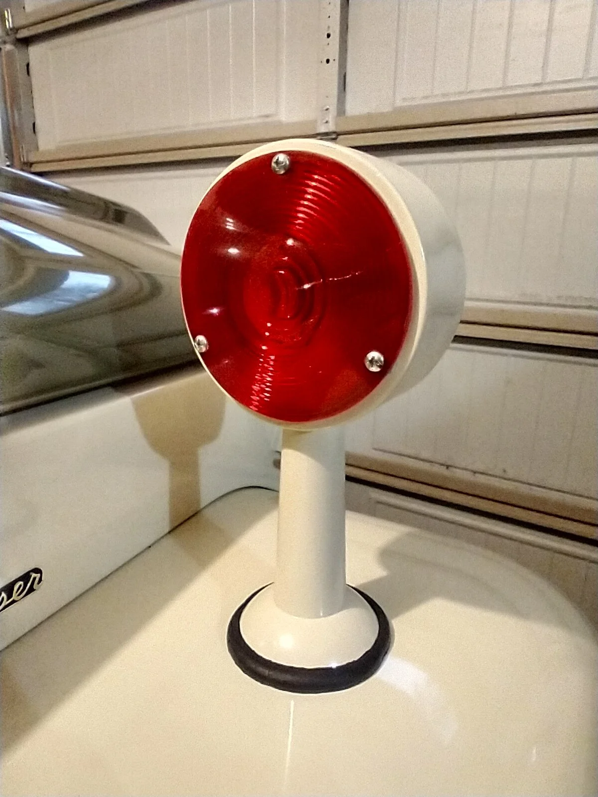 I went with a clear bulb but I may switch to amber. Yes I took an OEM factory turn signal, and put a light shield to separate the two colored lenses in the center of the housing. The base is solid aluminum and threaded all of the way through. The factory housing threads in from the top and a threaded lamp tube threads in from the bottom with a flat and lock washer and nut. It worked perfectly. About 1 month after I completed this a close up of this actual turn signal showed up on the net. The base is actually oval not round. Oh well, close enough. I made the lenses from some universal lights I found at Pep Boys. I had to grind about 3/8" off the outer edge but the pattern is very close to the OEM lens.What color bulb is inside? Curious what an amber bulb would looks like with the red cover? Did you use a OEM factory turn signal and cut the back plate off and then weld a longer stem on it? I love the craftsmanship and mix of earlier parts on this one!